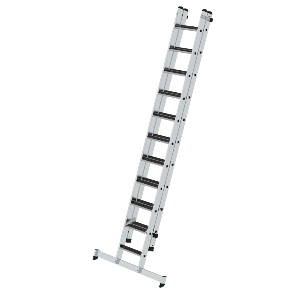 Günzburger Steigtechnik Stufen-Schiebeleiter 2-teilig mit nivello-Traverse und clip-step R13 1×11 + 1×10
