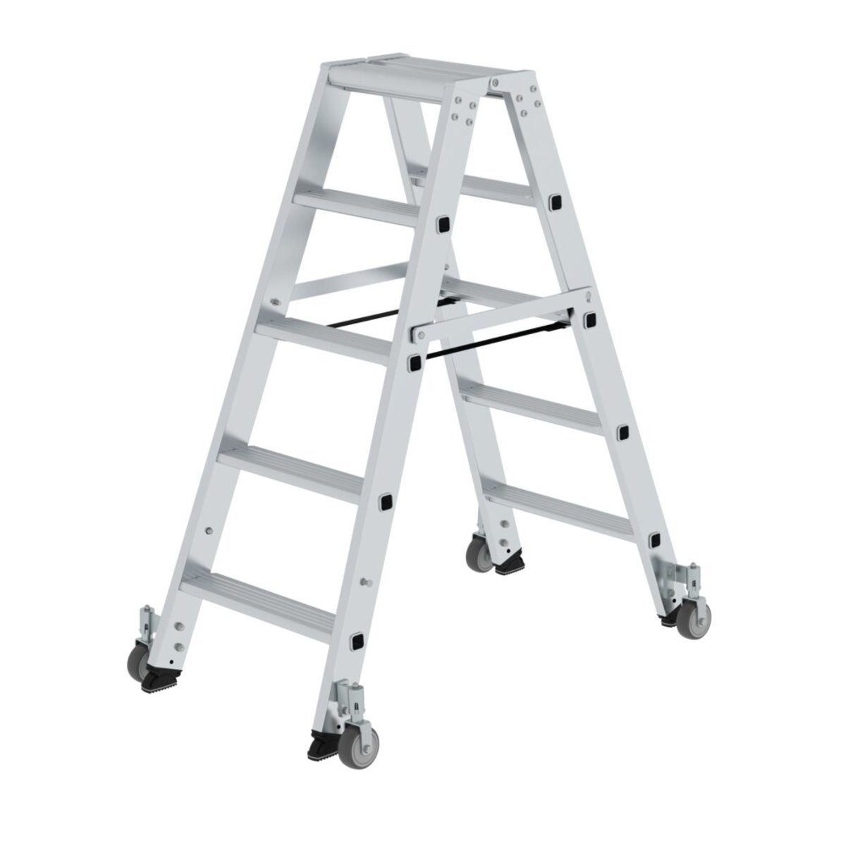 Günzburger Steigtechnik Stufen-Stehleiter beidseitig begehbar mit Rollen 2×5 Stufen