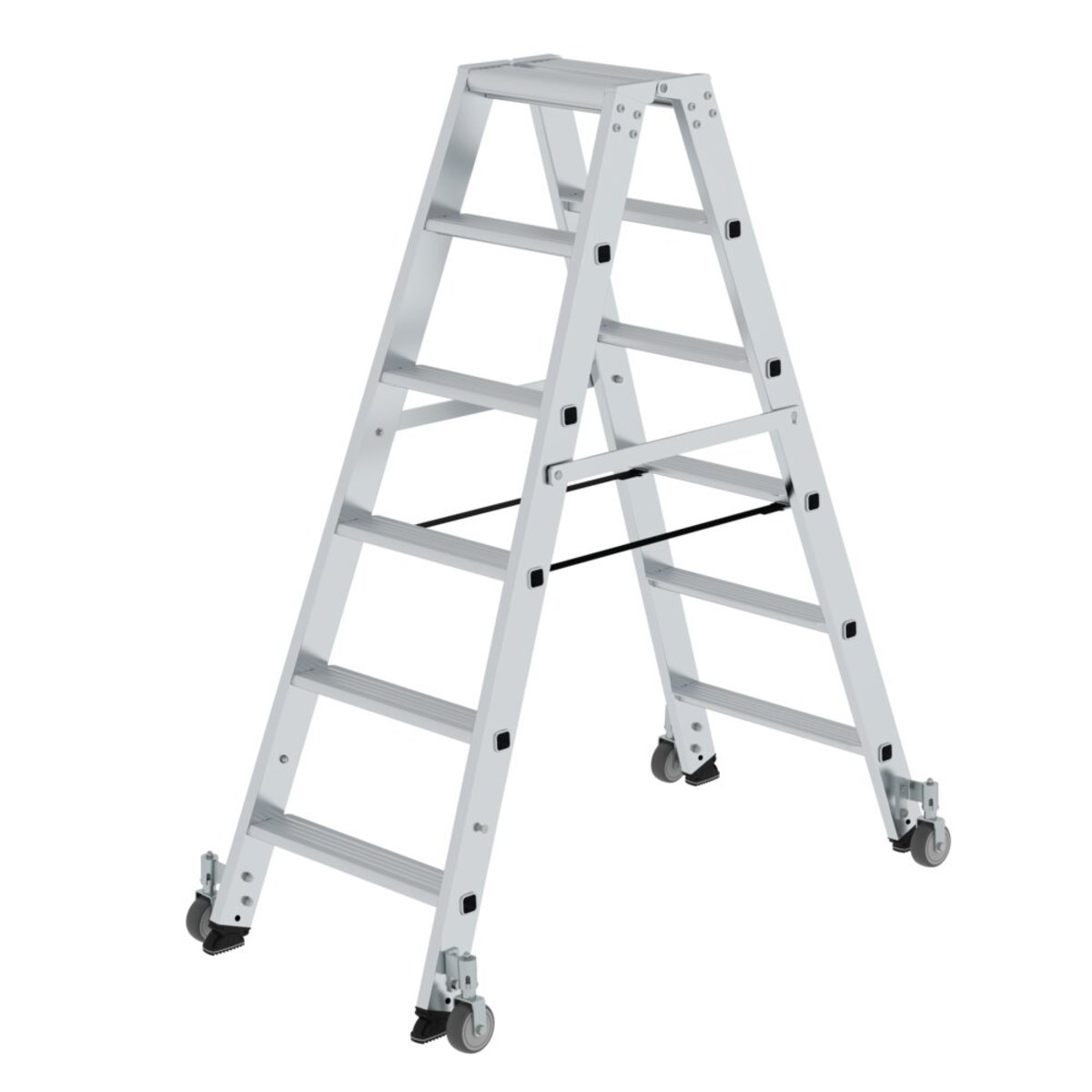 Günzburger Steigtechnik Stufen-Stehleiter beidseitig begehbar mit Rollen 2×6 Stufen