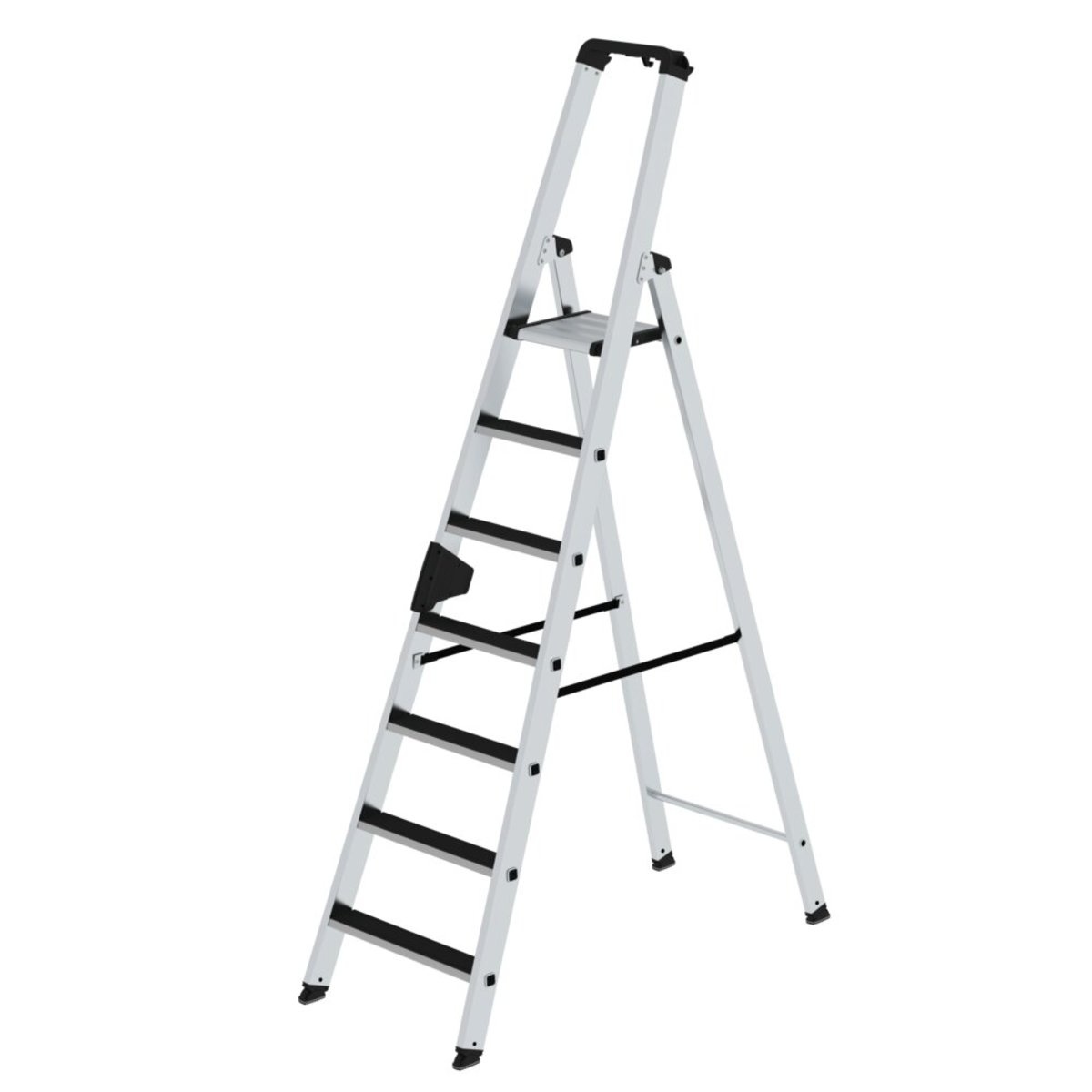 Stufen-Stehleiter aus Aluminium Stabile Rechteckrohr-Holme 80 mm tiefe, geriffelte Stufen und große Plattform 4-fach gebördelte Stufen-/Holmverbindung Trittauflage clip-step für optimierte Rutschhemmung Konische Holmführung für einen sicheren Stand nivello® Leiterschuhe mit patentierter 2-Achsen-Neigungstechnik ergo-pad® Griffzone mit Klemmmechanismus Leitergelenk ‘safe-cap’ Praktische Ablageschale mit integrierten Haken und Werkzeugaufnahmen Ab sieben Stufen: Spreizsicherung mit zwei hochfesten Polyestergurten Stufenabstand: 235 mm Leiterneigung: 70° Mit und ohne Trittauflagen erhältlich Maximale Belastung: 150 kgInformationen zu Nachhaltigkeitskriterien Unternehmenszertifizierung: ISO 9001 Unternehmenszertifizierung: EN 1090 Unternehmenszertifizierung: EcoVadis RoHS REACH Die MUNK Group arbeitet mit einem Code of Conduct Das Lieferkettengesetz findet aufgrund unserer Größe keine An…