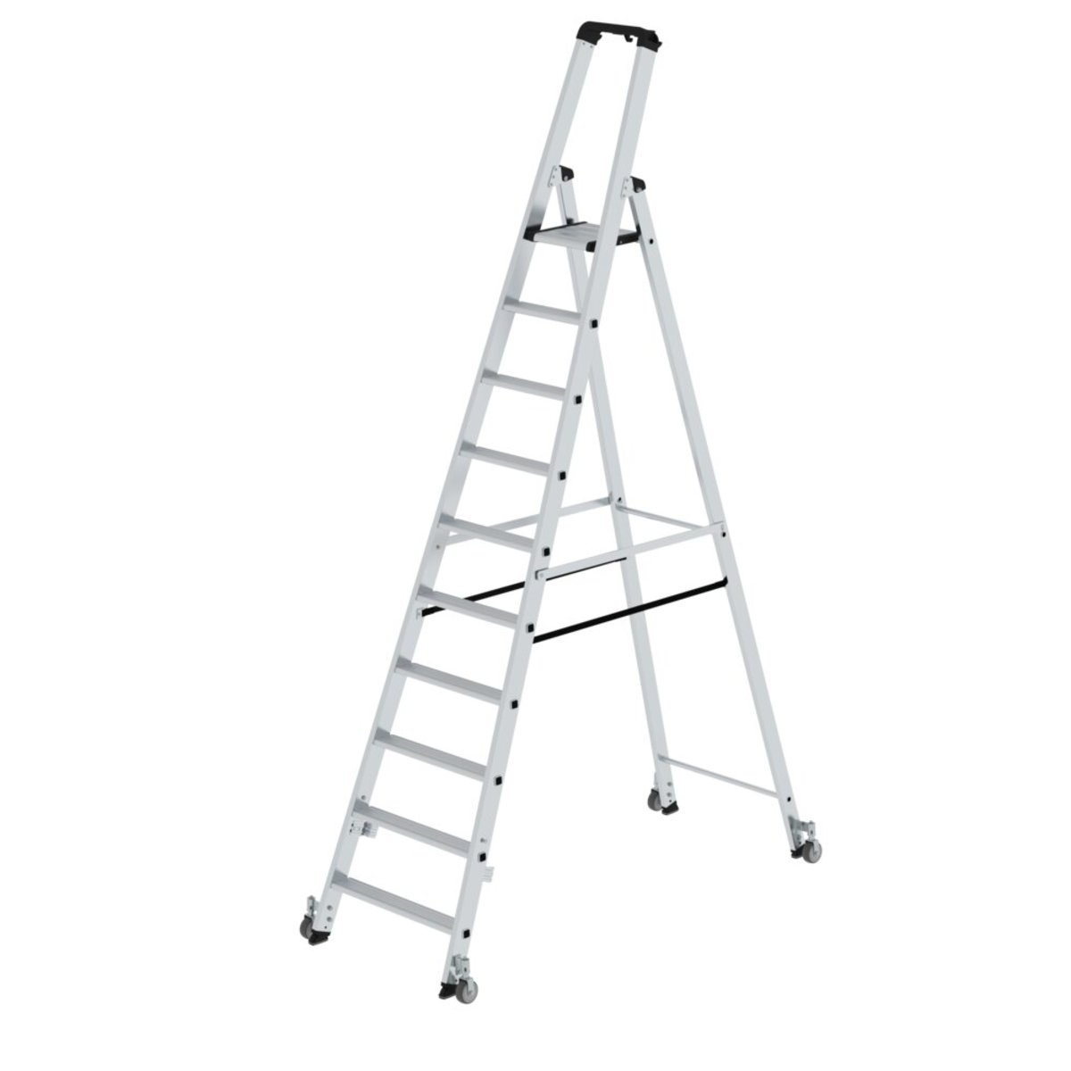 Günzburger Steigtechnik Stufen-Stehleiter einseitig begehbar mit Rollen 10 Stufen