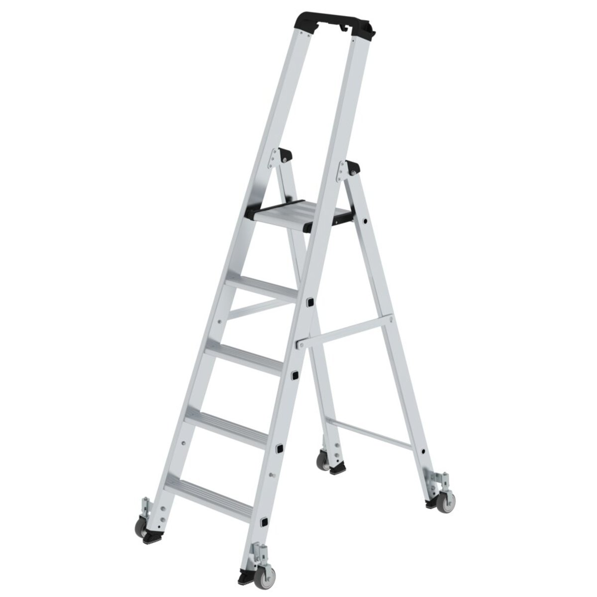 Günzburger Steigtechnik Stufen-Stehleiter einseitig begehbar mit Rollen 7 Stufen