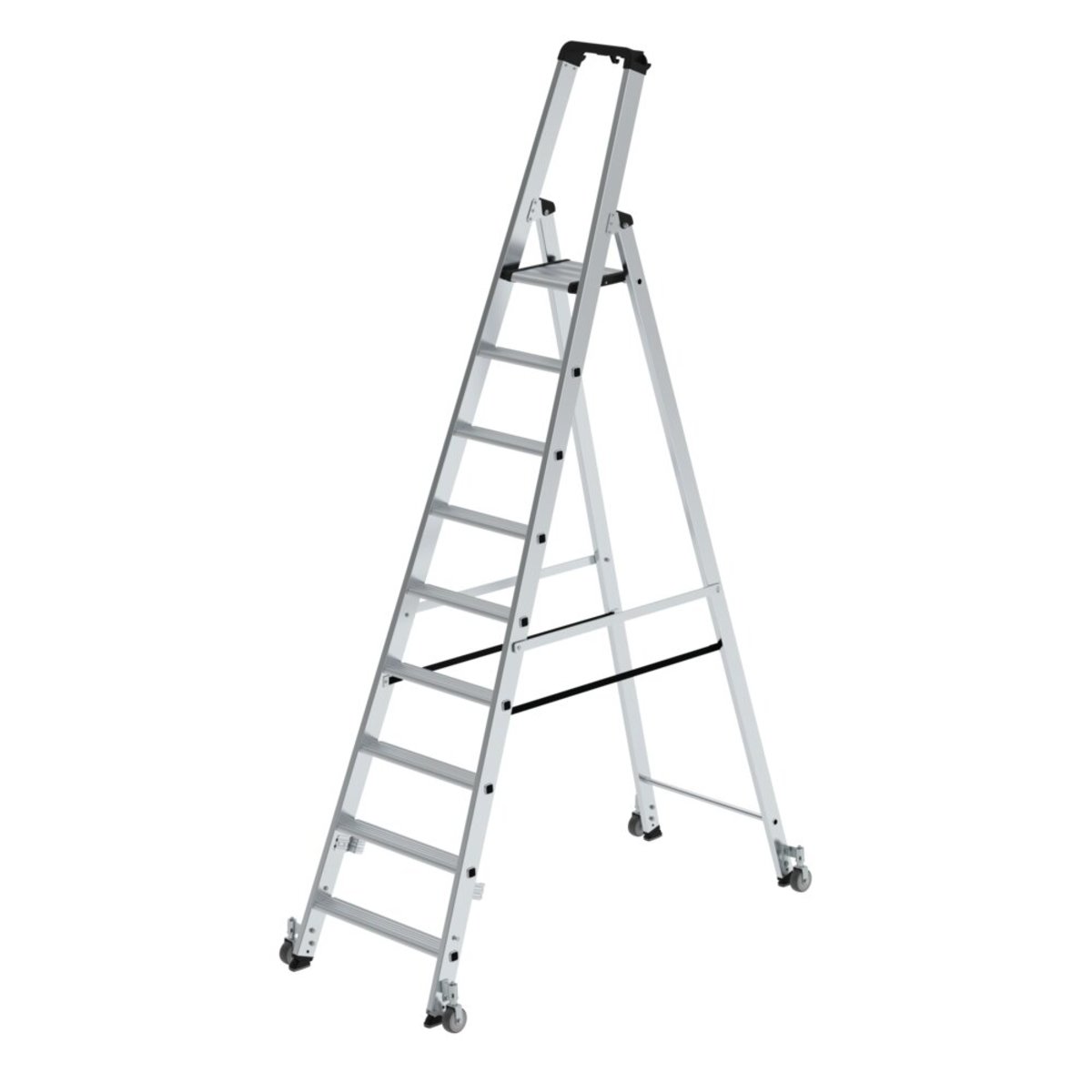 Günzburger Steigtechnik Stufen-Stehleiter einseitig begehbar mit Rollen 9 Stufen