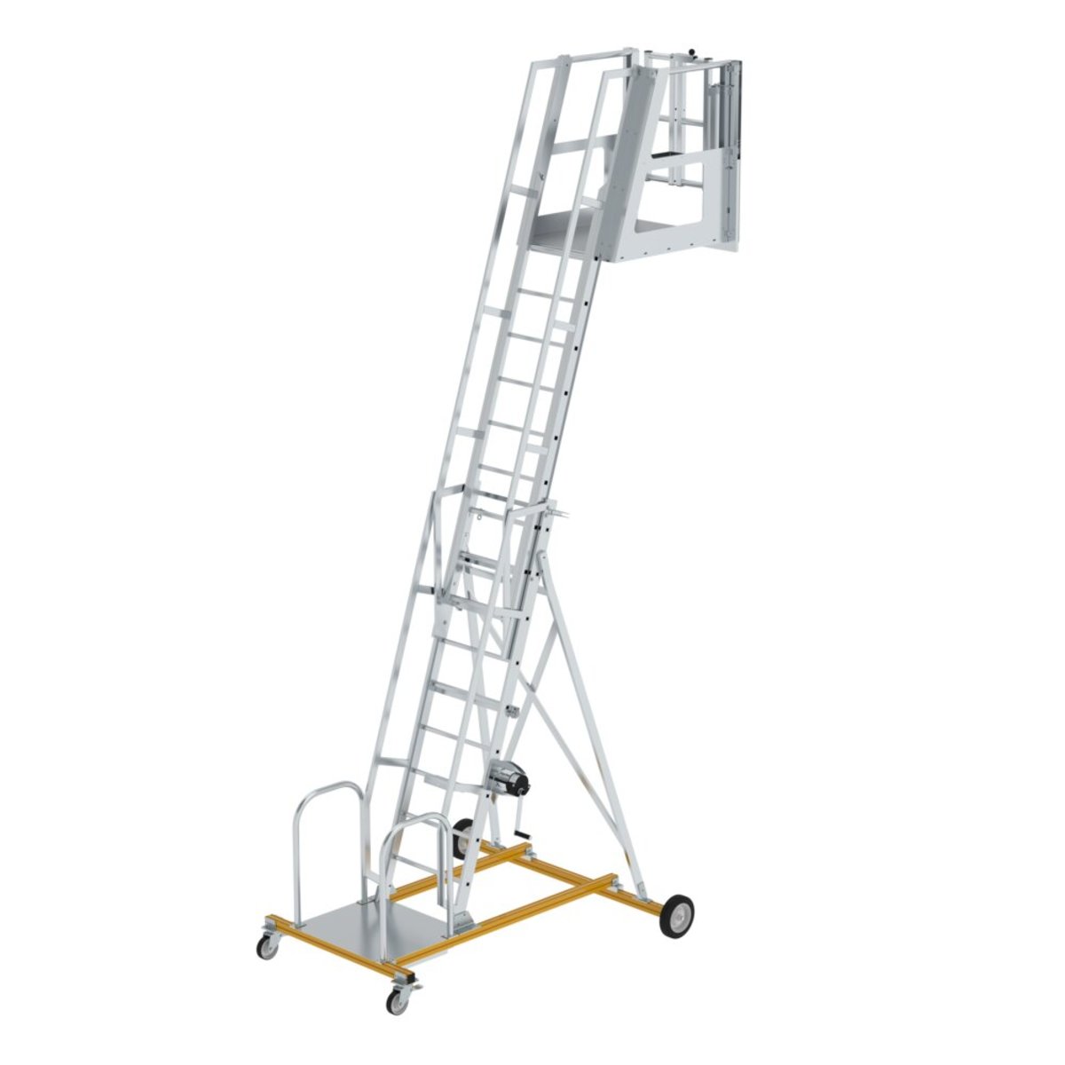2-teilige Tankwagenleiter aus Aluminium mit Plattform und Schutzkorb (Pflichtelement, muss separat bestellt werden) Schutzkorb in drei Varianten als Pflichtausstattung separat bestellbar Stabile Rechteckrohr-Holme Beidseitig geriffelte Vierkantsprossen 30 x 30 mm Optional Umsetzung mit Stufen möglich 4-fach gebördelte Sprossen- / Holmverbindung Führung und Verbindungsteile in Edelstahl Einfache Höhenverstellung von Sprosse zu Sprosse dank Seilwinde und Arretierung Plattform mit Gitterrostbelag R13 Beidseitiges Geländer mit Fuß- und Knieleiste Plattformstirnseite mit 2-teiliger Sicherungstüre und Schutzkorb (frei wählbar, muss separat bestellt werden) Fahrwerke teilweise in RAL 1021 pulverbeschichtet und in drei Ausführungen erhältlich Sprossenabstand: 280 mm Lieferzeit 15 Tage Hinweis: Die Tankwagenleiter dient ausschließlich als Zugang für Bedienungs- bzw. Kontrollarbeiten bei Be- u…