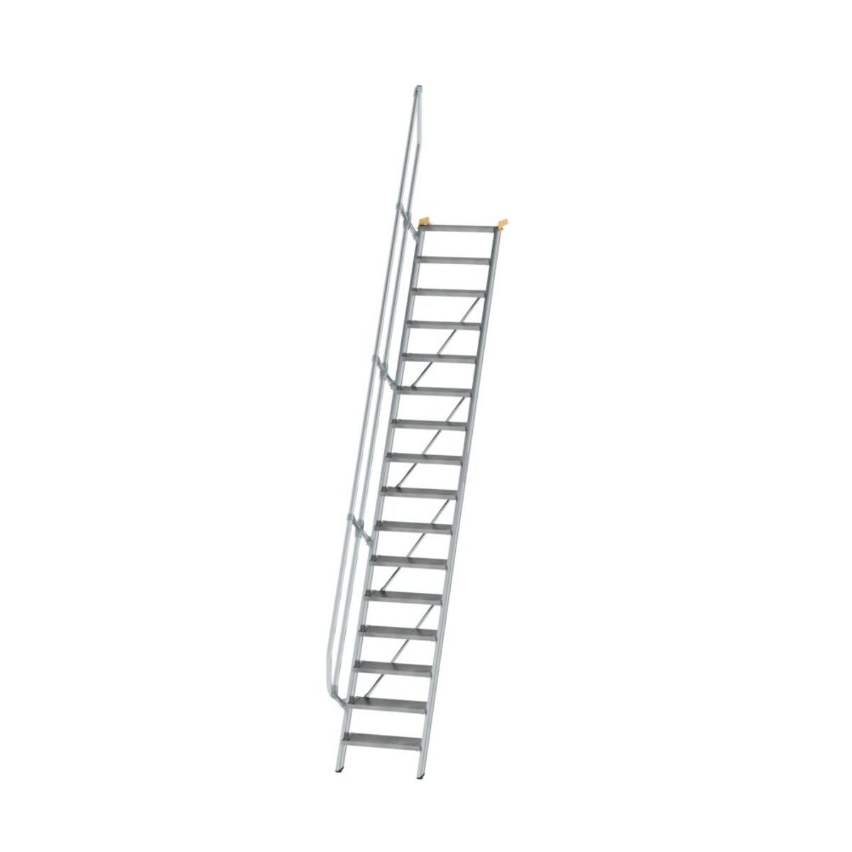 Günzburger Steigtechnik Treppe 60° Stufenbreite 600 mm 16 Stufen Aluminium geriffelt