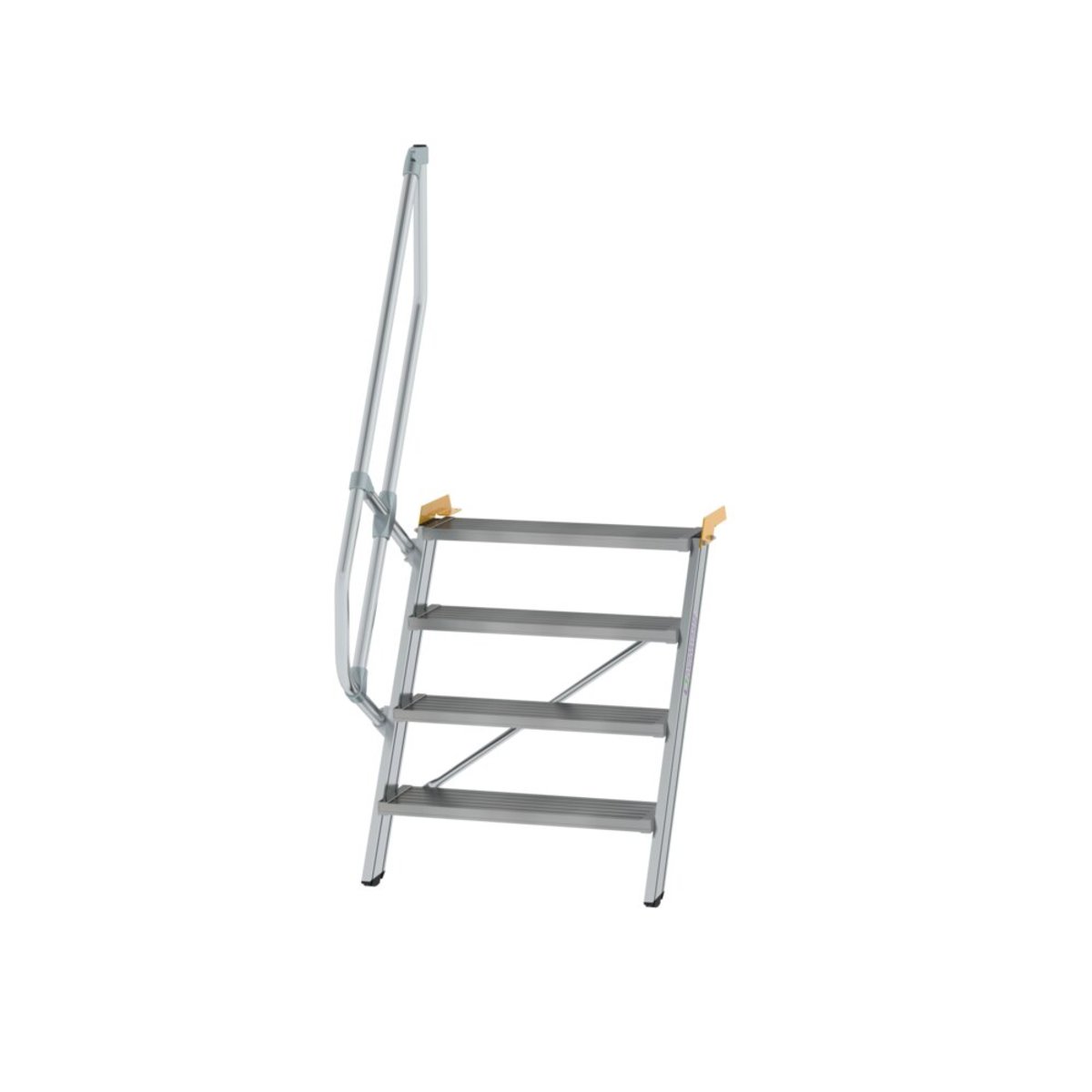 Ortsfeste Treppe aus Aluminium mit Neigung 60° Stufenbreite: 800 mm Stufentiefe: 225 mm Stufenausführung standardmäßig in Aluminium geriffelt (R 9), optional auch mit anderen Belägen erhältlich Handlauf einseitig Ø 40 mm mit verschraubten Verbindungselementen serienmäßig (Höhe: 1.100 mm) Zweiter Handlauf nach DIN EN ISO 14122-3 erforderlich und gegen Mehrpreis erhältlich Bei Treppen mit senkrechter Höhe ab 3.000 mm ist ein Zwischenpodest erforderlich (gegen Mehrpreis) Einfache Montage durch Lieferung in vormontierten Baugruppen inklusive Montageanleitung Maximale Belastung: Stufenbelastung 150 kg, Gesamtbelastung 300 kg Hinweis: Im Standard sind Verbindungsteile aus verzinktem Stahl enthalten, welche für den Innenbereich geeignet sind. Gegen Mehrpreis können diese auch in Edelstahl ausgeführt werden, was für den Außenbereich empfohlen wirdInformationen zu Nachhaltigkeitskriterien Unt…
