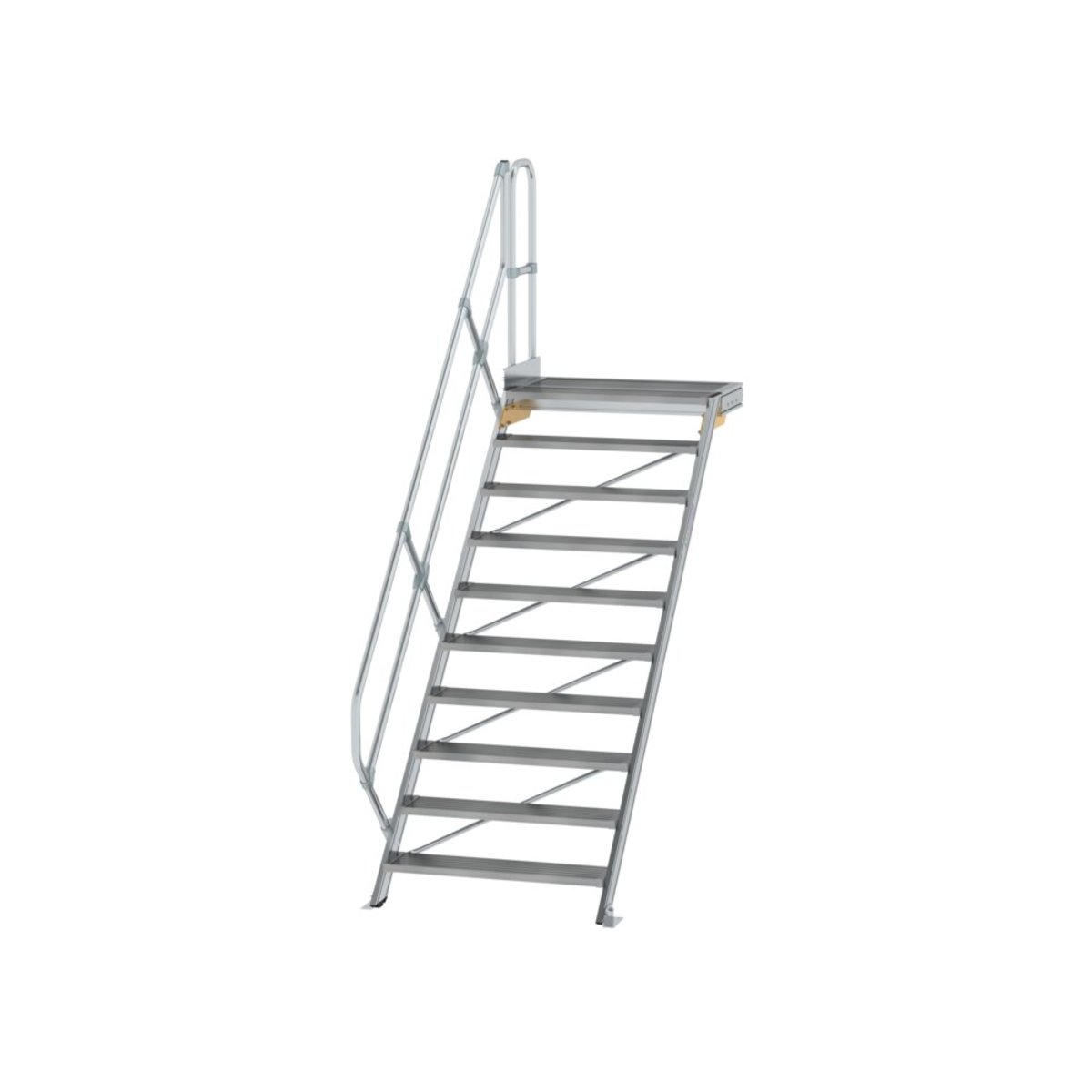 Günzburger Steigtechnik Treppe mit Plattform 45° Stufenbreite 1000 mm 10 Stufen Aluminium geriffelt