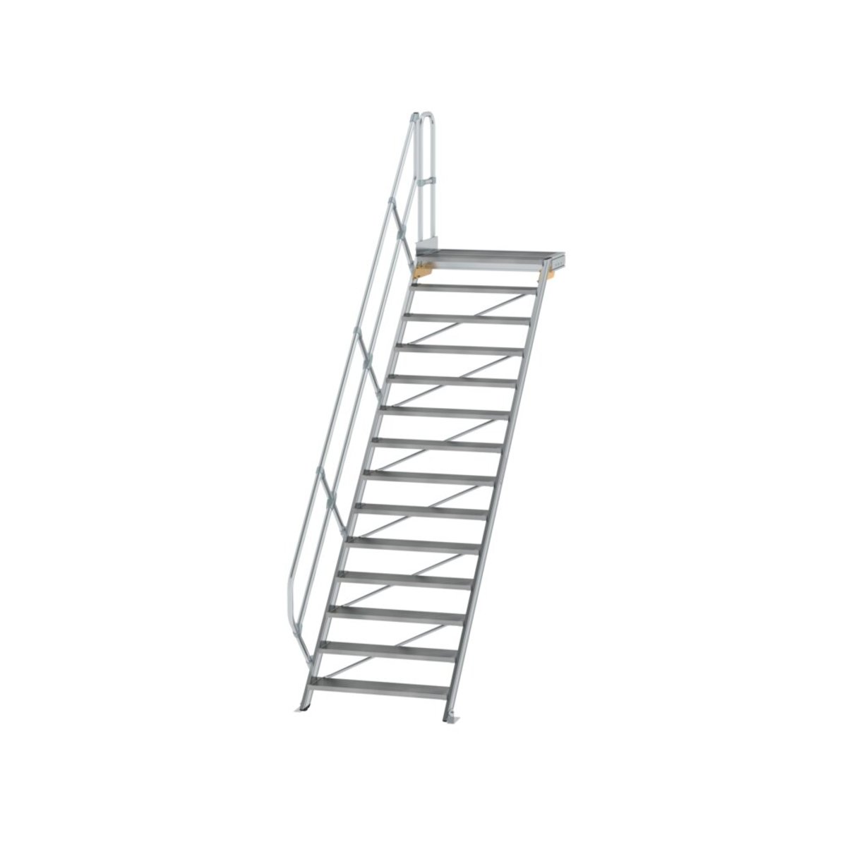 Günzburger Steigtechnik Treppe mit Plattform 45° Stufenbreite 1000 mm 14 Stufen Aluminium geriffelt