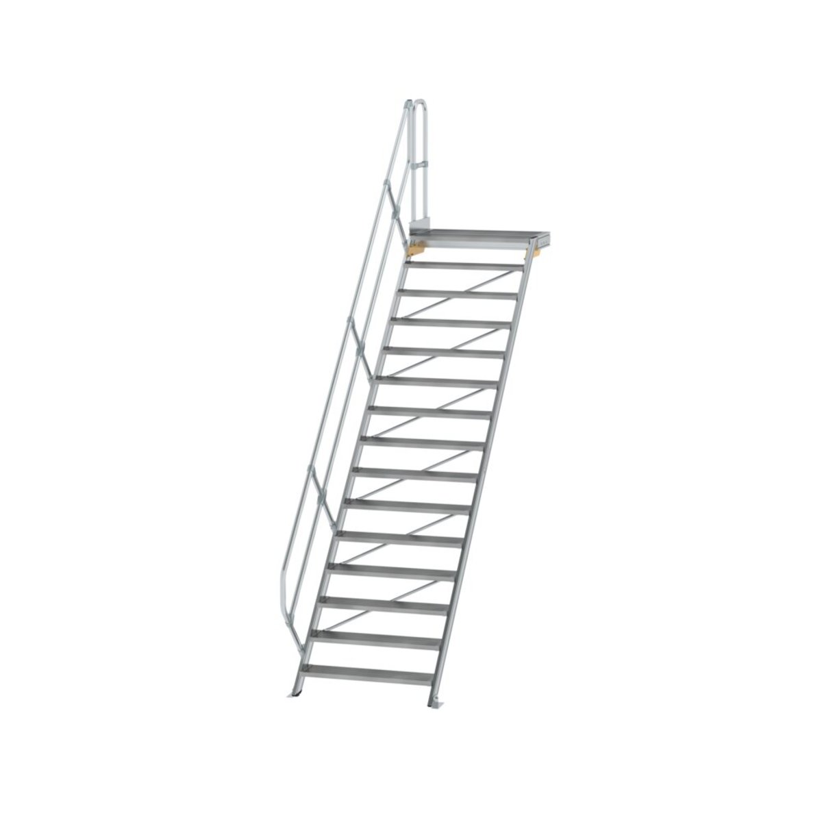 Günzburger Steigtechnik Treppe mit Plattform 45° Stufenbreite 1000 mm 15 Stufen Aluminium geriffelt