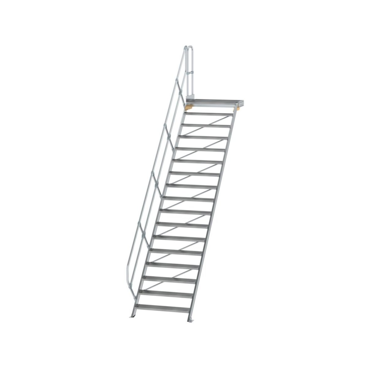 Günzburger Steigtechnik Treppe mit Plattform 45° Stufenbreite 1000 mm 17 Stufen Aluminium geriffelt