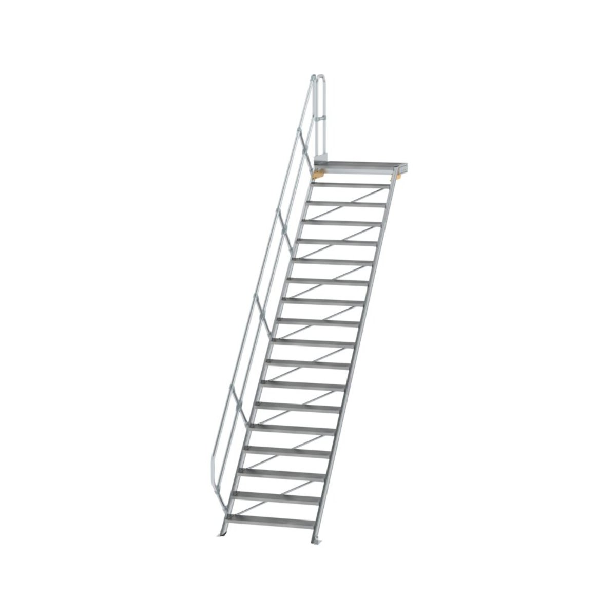Günzburger Steigtechnik Treppe mit Plattform 45° Stufenbreite 1000 mm 18 Stufen Aluminium geriffelt