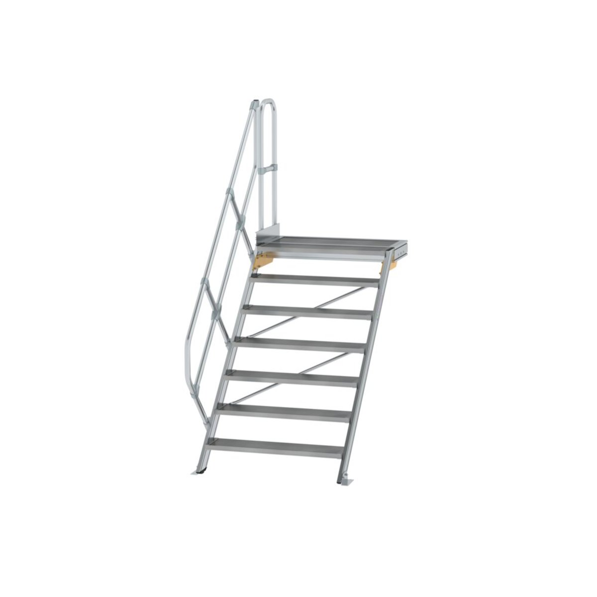 Günzburger Steigtechnik Treppe mit Plattform 45° Stufenbreite 1000 mm 7 Stufen Aluminium geriffelt