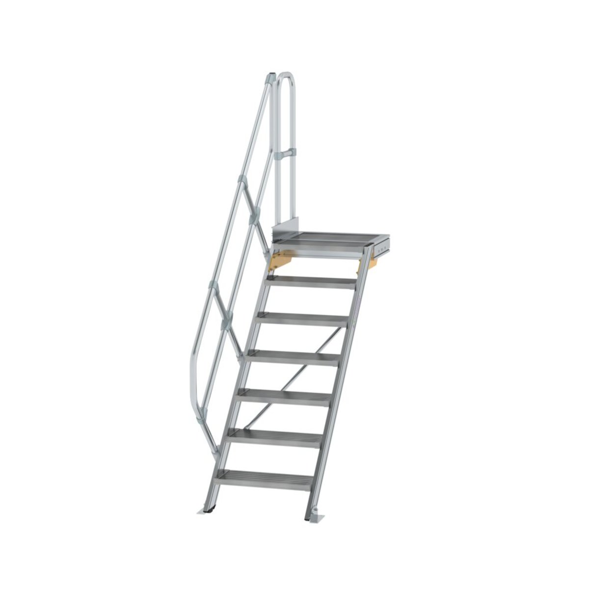 Günzburger Steigtechnik Treppe mit Plattform 45° Stufenbreite 600 mm 7 Stufen Aluminium geriffelt