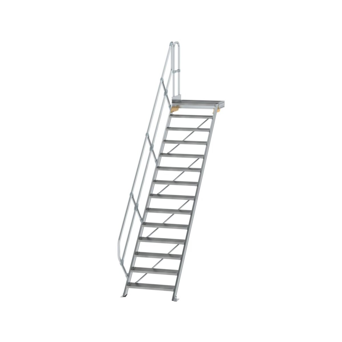 Günzburger Steigtechnik Treppe mit Plattform 45° Stufenbreite 800 mm 14 Stufen Aluminium geriffelt