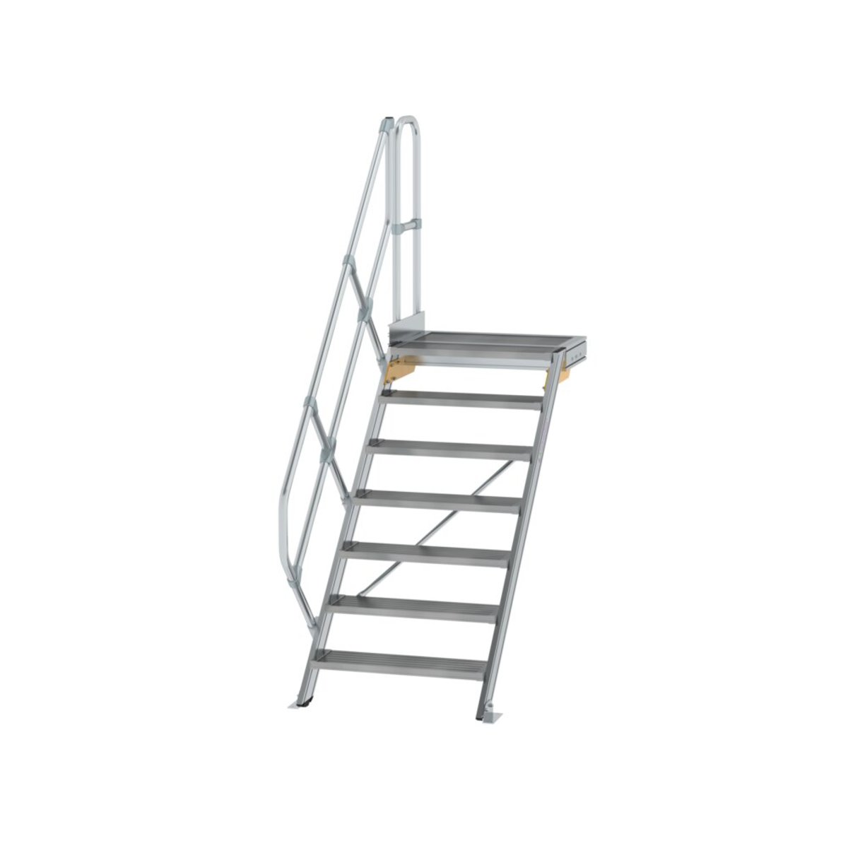 Günzburger Steigtechnik Treppe mit Plattform 45° Stufenbreite 800 mm 7 Stufen Aluminium geriffelt