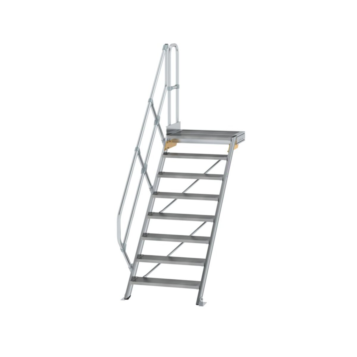 Günzburger Steigtechnik Treppe mit Plattform 45° Stufenbreite 800 mm 8 Stufen Aluminium geriffelt