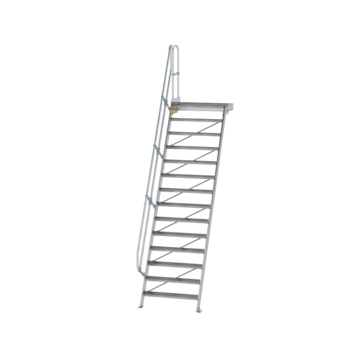 Günzburger Steigtechnik Treppe mit Plattform 60° Stufenbreite 1000 mm 14 Stufen Aluminium geriffelt
