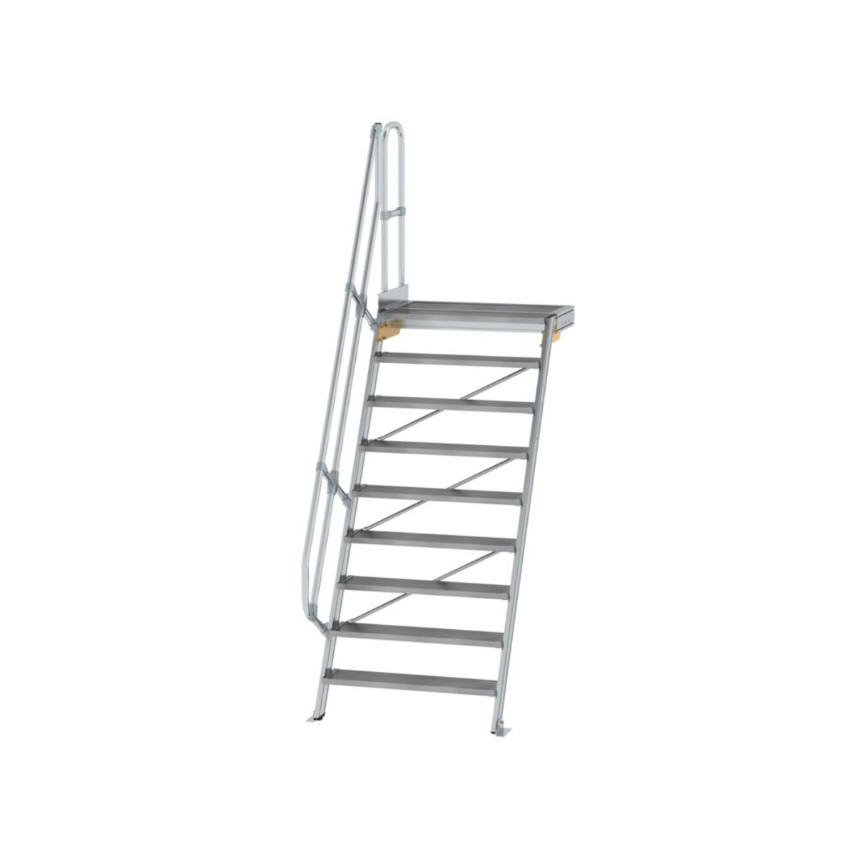 Günzburger Steigtechnik Treppe mit Plattform 60° Stufenbreite 1000 mm 9 Stufen Aluminium geriffelt