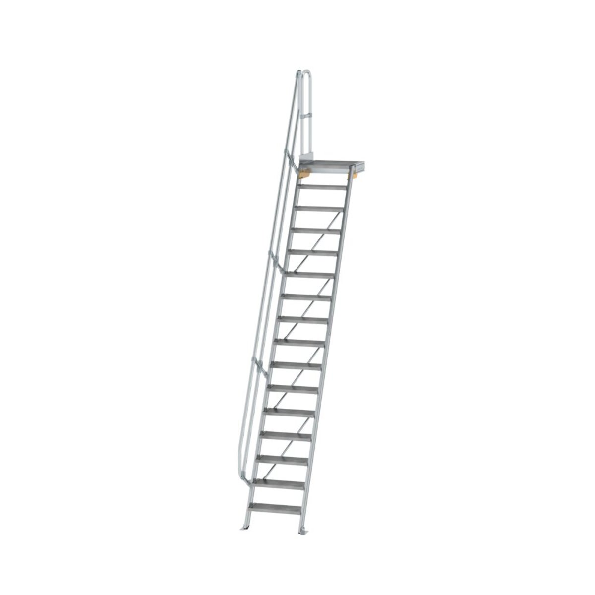 Günzburger Steigtechnik Treppe mit Plattform 60° Stufenbreite 600 mm 16 Stufen Aluminium geriffelt