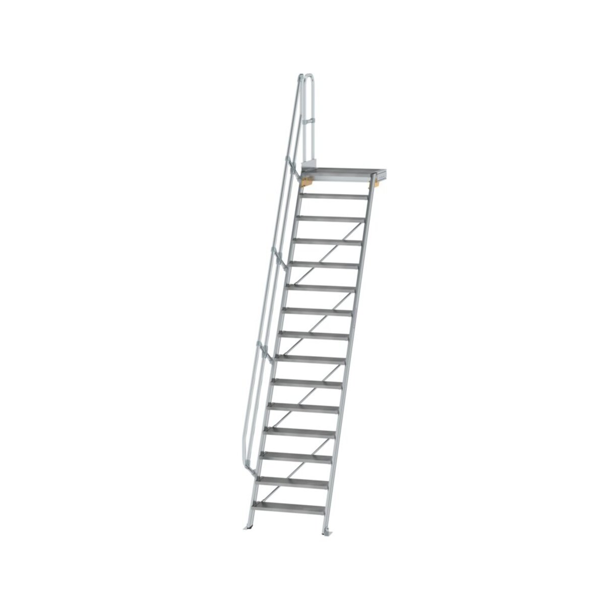 Günzburger Steigtechnik Treppe mit Plattform 60° Stufenbreite 800 mm 15 Stufen Aluminium geriffelt