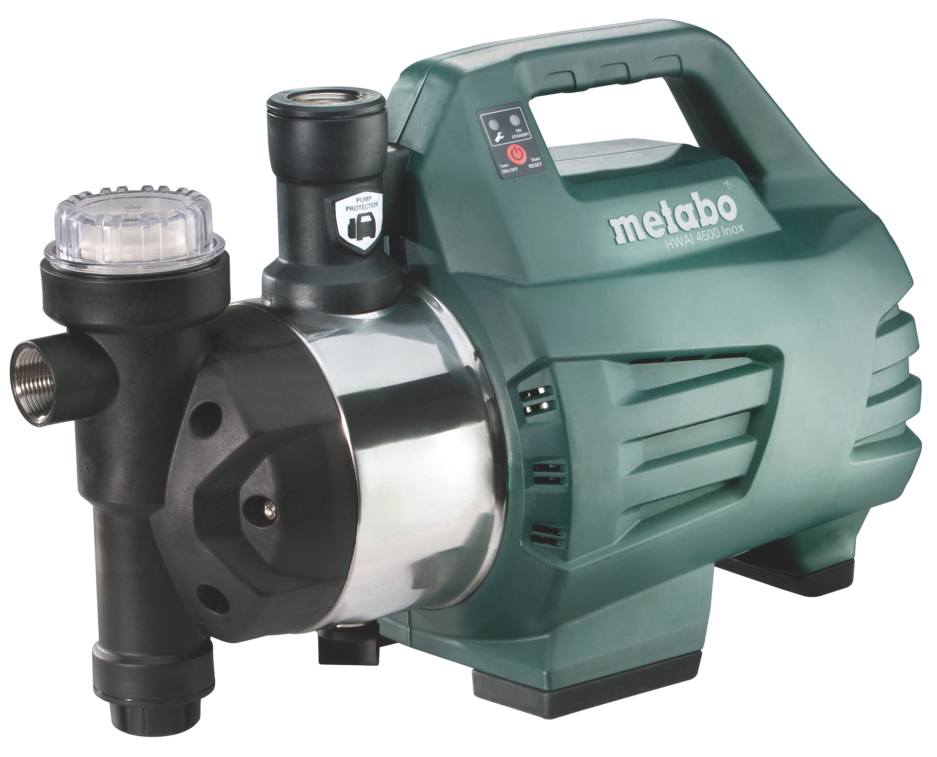 • Komplettsystem mit serienmäßig integriertem Filter und Rückschlagventil für einfache Installation • Intelligente Elektronik für bedarfsgerechten und energiesparenden Automatikbetrieb • Automatischer Trockenlaufschutz mit LED-Anzeige zum Schutz der Pumpe und für hohe Anwendersicherheit • Wartungsfreier Kondensatormotor • Überlastschutz schützt den Motor vor Überhitzung • Hochwertiges Gleitringdichtungssystem für lange Lebensdauer • Langlebiges Edelstahl-Pumpengehäuse • Separate Wasser-Einfüllöffnung für komfortable Inbetriebnahme der Pumpe • Werkzeuglose Wasser-Ablassschraube zum Schutz bei Frostgefahr • Gummierte Füße für geräusch- und vibrationsarmen Betrieb • Für die Gartenbewässerung mit 1 bis 3 Regnern • Für die automatische Wasserversorgung, zur Gartenbewässerung, Grundwasserförderung sowie zum Fördern, Auspumpen und Umwälzen von Klarwasser