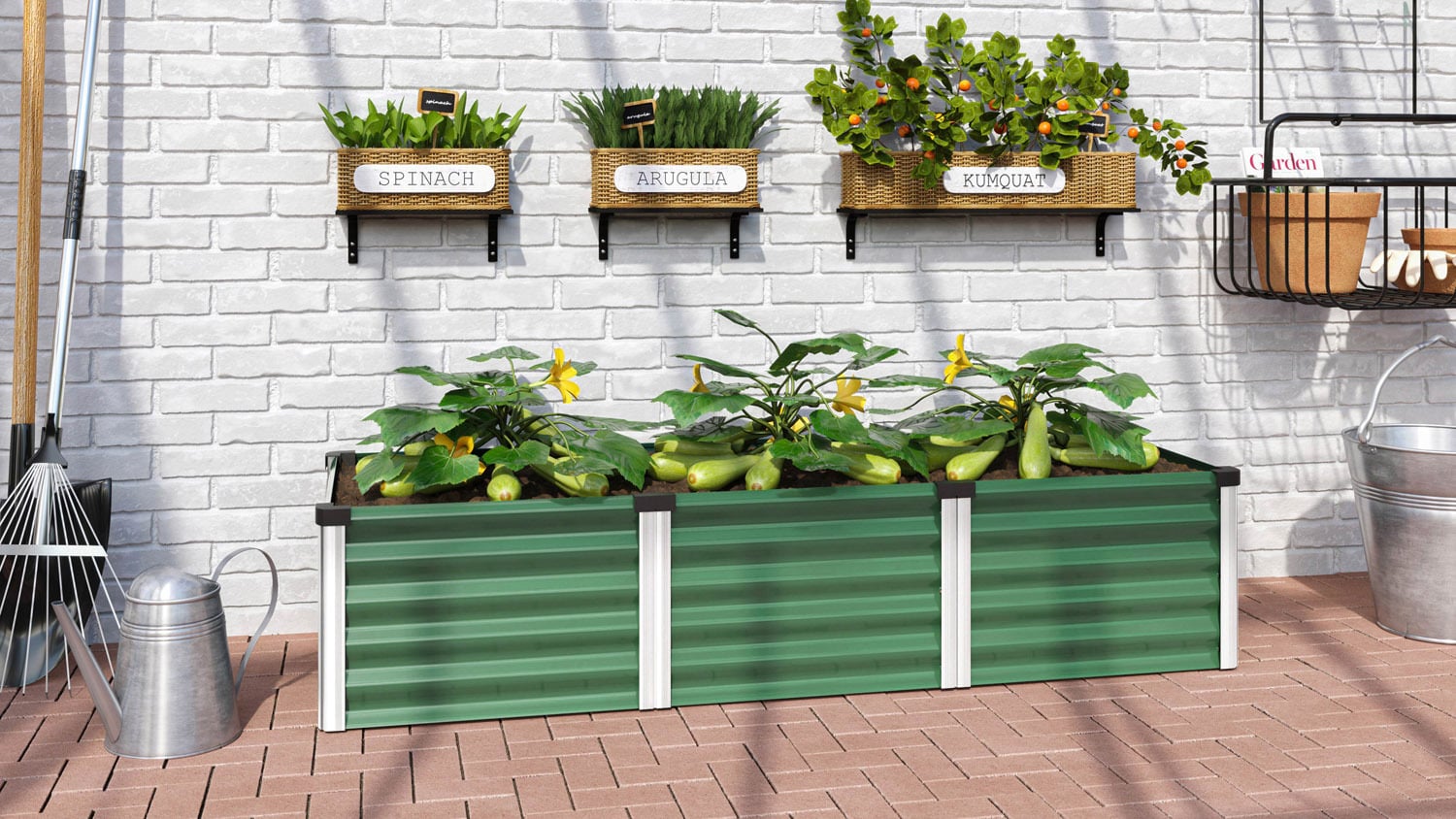 Hochbeet Meta In&Out 401 Beete im Gewächshaus erleichtern die Gartenarbeit und sorgen für ein aufgeräumtes und leicht sauber zu haltendes Gewächshaus. Sie helfen die Pflanzen zu organisieren, sowohl innerhalb der Beete, als auch die Einrichtung des gesamten Gewächshauses betreffend. Die Vitavia Hochbeete der Reihe In&Out bieten durch ihre Höhe von 40 cm einen leicht erhöhten Arbeitsbereich – sodass auch tief wurzelnde Pflanzen genug Erde finden, um sich gut darin zu halten und mit ausreichend Nährstoff versorgt zu werden. Eine gezielte Erdschichtung kann die Bodenverhältnisse optimieren. Im Format sind die In&Out Beete auf die Standardbreiten der Vitavia Gewächshäuser zugeschnitten, sodass sie optimal an das hintere Ende oder – in der L-Form (Größe M) – in die hintere Ecke der Gewächshäuser passen. Eine Übersicht der passenden Formate für die Standard-Gewächshausmodelle gibt die Tabelle (s.u.). Hergestellt aus dem extrem witterungsbeständigen Zincalume® sind die In&Out Beete aber genauso geeignet für den Außenbereich. Im Gegensatz zu Holzbeeten benötigen sie keine Innenfolie. Das Meta IN&OUT ist in drei Größen erhältlich: S, M und L, wobei M eine L-Form hat, die beiden anderen eine klassische rechteckige Form. Dezent fügen sich die Hochbeete IN&OUT in den Farben Granit oder Seegras, kombiniert mit farblich abgesetzten Aluminiumprofilen (wahlweise in Aluminium eloxiert oder schwarz pulverbeschichtet) in nahezu jedes Vitavia Gewächshaus und den modernen Garten ein. Die im Bausatz enthaltenen einzelnen Module sind vorgeschnitten, die Verbindungsstücke vorgebohrt.