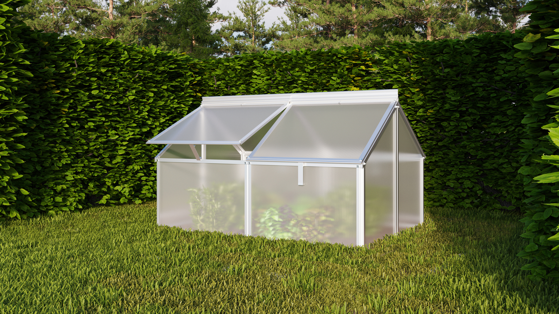 Hochfrühbeet Gaia Jumbo Mit diesem Frühbeet holen Sie sich eine Menge Optionen für das Hobbygärtnern in den Garten: Seine Maße erlauben den einfachen Aufsatz auf einen Palettenaufsatzrahmen, über dessen Höhe Sie frei bestimmen können. Außerdem ist es mit einer Seitenhöhe von knapp 40 cm und einer Gesamthöhe von 72 cm so hoch, dass Ihre Pflanzen weit über die Anzuchtphase hinaus darin verbleiben können. Das Dach besteht aus vier aufstellbaren Dachfenstern, sodass Sie quasi über das bestbelüftete Mini-Gewächshaus auf dem Markt verfügen. Die Glasversion des Gaja Jumbo ist dem Vitavia-Standard folgend mit kristallklarem Sicherheitsglas (ESG) ausgestattet: Das thermische vorgespannte Blankglas, mit dem auch die Vitavia Gewächshäuser verglast sind, zeichnet sich durch höhere Stabilität und Schlagfestigkeit aus. Sollte doch mal eine Scheibe zubruch gehen, splittert sie nicht scharfkantig, sodass Kinder und Haustiere keine Verletzungen davontragen. Mit besseren Isoliereigenschaften punktet die alternative Variante mit Hohlkammerplatten-Eindeckung. So verlängern ambitionierte Hobbygärtner ihre Saison um weitere Wochen. Das Gaia Jumbo kommt als Bausatz und ist in zwei Profilfarben erhältlich: Aluminium eloxiert und Schwarz pulverbeschichtet. – Breite: 831, – Gewicht: 6,308, – Höhe: 719, – Länge: 1193