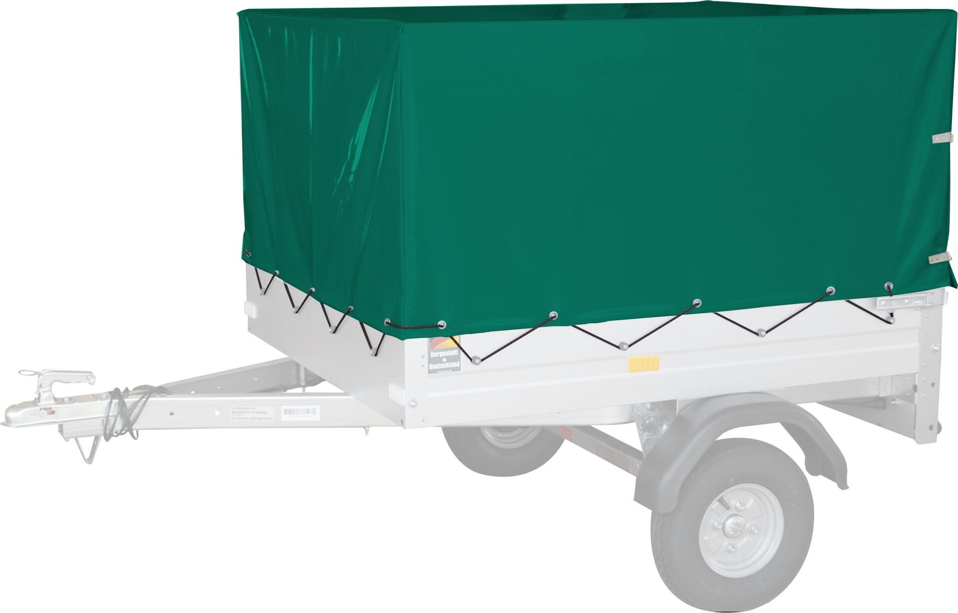 Hochplane und Hochspriegel im Set für PKW Anhänger Mini 350 Das Set beinhaltet eine Hochplane in grün mit passendem Hoch–spriegel (Gestell). Die UV-beständige Wetterschutzplane stellt die Stema am Standort Deutschland seit über 65 Jahren in bester Qualität her. Unsere hauseigene Planennäherei verarbeitet strapazierfähigen und getesteten Planenstoff von ausgewählten Lieferanten. Sie erhalten ein langlebiges Produkt, welches rückseitig zum Öffnen ist. Die Befestigung erfolgt mit einem 6 mm starken Expanderseil direkt an den Einhängeknöpfen Ihrer Zink-Beplankung. Der Überhang beträgt ca. 8 cm. Der dazu maßgerecht, passende Unterbau (Hochspriegel) wird ebenfalls im Hause STEMA hergestellt. Die Montage erfolgt in den Kastenecken Ihres Pkw-Anhängers. Die Fahrt mit aufgebautem Hochspriegel ist nur mit geschlossener und arretierter Hochplane zulässig! (Siehe auch Sicherheitshinweise in Ihrer Allgemeinen Betriebserlaubnis!) Das Planenset ist 60 cm hoch und wird unmontiert geliefert. Angegebene Höhe ist immer ab Oberkante Bordwand gemessen. Lieferung inklusive Montagematerial und Aufbauanleitung. Der abgebildete PKW-Anhänger ist im Lieferumfang nicht enthalten. – Gewicht: 14, – Höhe: 60, – Produktart: Zubehör für Anhänger