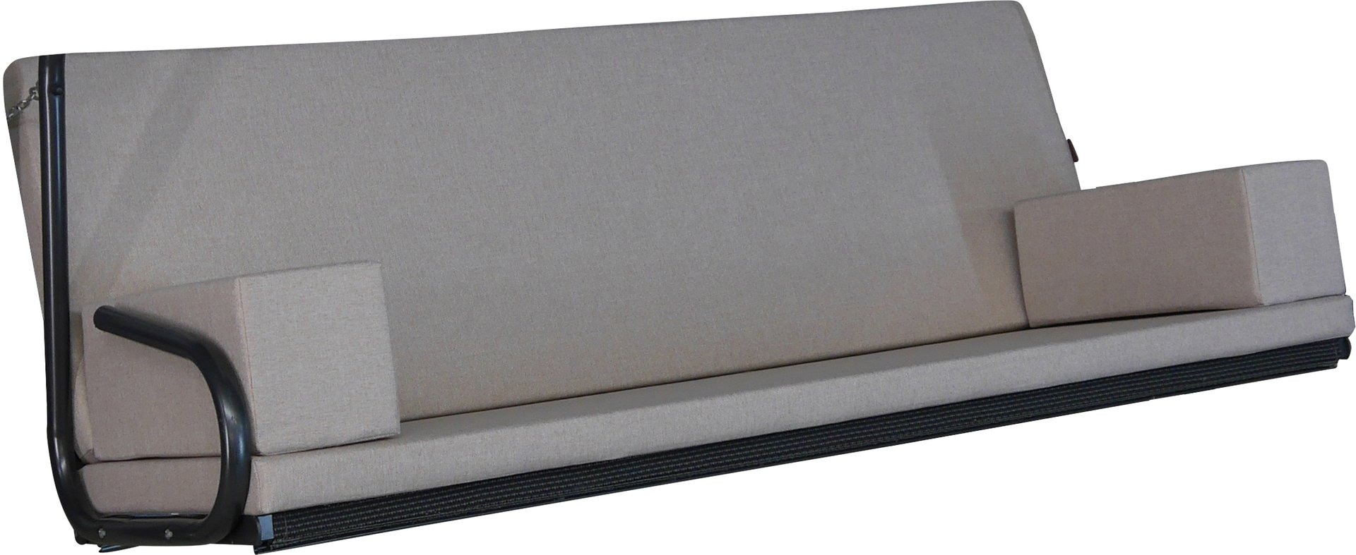 Die Angerer Hollywoodschaukel Auflage Tolar ist passend für viele 3-Sitzer Hollywoodschaukeln mit einer Sitzbreite von ca. 180 cm. Sitz- und Lehnenkissen, sowie die beiden Seitenkissen in moderner, eckiger Form sind aus einem besonders hochwertigen Möbelstoff gefertigt. Die Kissenbezüge aus 100% Polyester sind dank praktischer Reißverschlüsse abnehmbar und waschbar. Made in Germany. In verschiedenen Farben erhältlich.