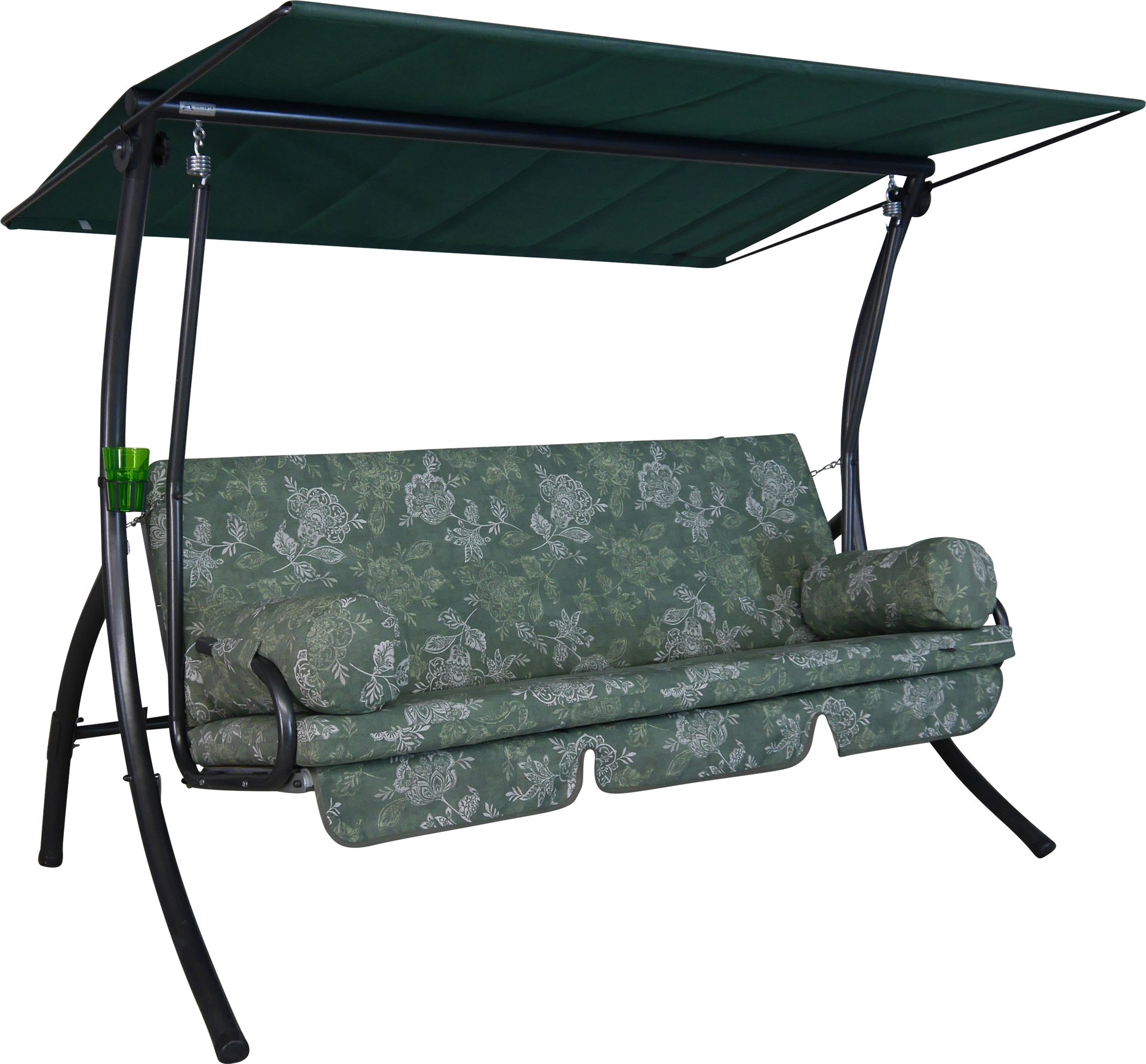 Hollywoodschaukel Dream Die Angerer Dream Hollywoodschaukel ist mit wenigen Handgriffen zur Liegefläche abklappbar. Das Gestell besteht aus verzinktem Stahl, der für optimalen Korrosionsschutz mit einer kratzunempfindlichen Pulverbeschichtung veredelt wurde. Viele Teile, wie beispielsweise der witterungsbeständige Sitz aus Kunststoff, werden bereits werksseitig vormontiert geliefert, sodass der Aufbau der Hollywoodschaukel kinderleicht ist. Die Auflage besteht aus je einem Sitz- und Lehnenkissen, sowie zwei Nackenrollen und einer Unterlage. Alle Polster der Schaukelauflage sind mit einem Reißverschluss versehen und somit abziehbar und waschbar. Das Sonnendach der Hollywoodschaukel ist aus einem sehr hochwertigen und festen Polyacrylstoff gefertigt, der dank seiner speziellen Outdoor-Ausrüstung ideal für den Einsatz im Garten geeignet ist. Der robuste Stoff ist wasser- und schmutzabweisend beschichtet und hat eine hohe Lichtechtheit. Das Dach ist in der Neigung verstellbar und kann nach vorne und hinten verschoben werden, sodass stets optimaler Sonnenschutz erzielt werden kann. Belastbarkeit: ca. 240 kg. Standfläche: ca. 210 x 145 cm. Zur Selbstmontage, inkl. Montageanleitung. Made in Germany. – Breite: 210, – Gewicht: 53, – Höhe: 145, – Länge: 210