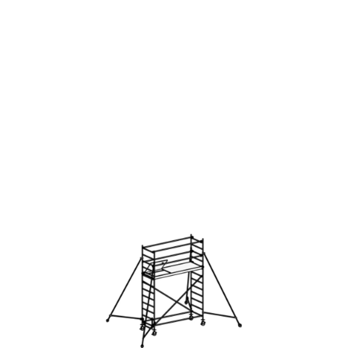 Fahrgerüst mit Ausleger, Bühnenlänge 2,95 m, Rahmenteilbreite 0,80 m, Reichhöhe 4,40 m∙ Ideal geeignet für Dach- und Fassadenarbeiten.∙ Extrem robuste Ausführung durch massive, geschweißte Rahmenteile.∙ Schneller Auf- und Abbau durch massive Klickverschlüsse an Streben und Diagonalen und Verwendung einer Bühne je Etage.∙ Inkl. HYMER-Lifter, mit dem sich Diagonalen und Verstrebungen schnell und sicher von unten ein- und aushängen lassen.∙ Sehr geräumige Bühne (2,95×0,65 m), wetterfest und rutschsicher.∙ Inkl. 4 höhenverstellbarer Lenkrollen (Ø 200 mm) für den Ausgleich von Bodenunebenheiten.∙ Inkl. teleskopierbarer Ausleger mit Bajonett-Verschluss zur bequemen Montage vom Boden aus.∙ Aufbau mit Höhenversatz möglich.