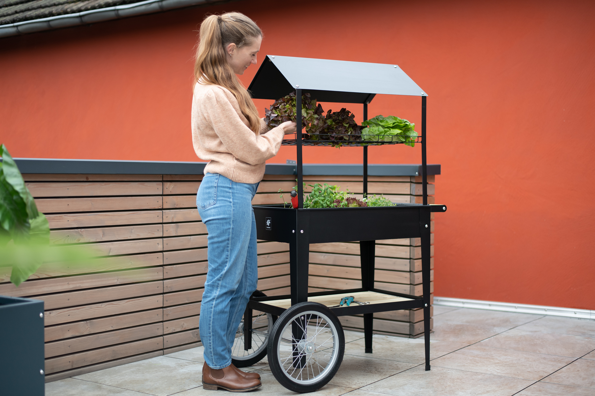 Kräuterfabrik Urban Expert Herstera Garden Hochbeet Expert – Ihr Allround-Talent Der Herstera Garden verbindet modernes Design mit rückenschonendem Gärtnern in angenehmer Stehhöhe. Bei der bunten Auswahl verschiedenster Farben findet jeder das Passende für seinen Geschmack. Aus pulverbeschichtetem oder verzinktem Stahl für enorme Lebensdauer und abgerundeten Kanten für hohe Sicherheit hergestellt. Rostfrei, witterungs- und frostbeständig für den ganzjährigen Gebrauch zur Aufzucht von Gemüse und Kräutern oder einfach als dekorativer Pflanzkasten geeignet. Die spezielle Bodenform ermöglicht das Ansammeln und Ablassen (Gummiabdichtung) von überschüssigem Wasser. Die Bereifung garantiert einfachen Transport Ihres Hochbeetes. Die Kräuterfabrik Expert ist zudem mit einer hochmodernen Überdachung ausgestattet. Durch die optimale Höhe von 80 cm können Sie empfindliche Pflanzen vor Regen oder Schnee schützen. Weiterhin bietet die Überdachung auch optional die Funktion, ein LED Licht (seperat erhältlich) anzubringen, um Ihre Pflanzen mit modernem und freundlichem LED Licht zu beleuchten. Dadurch beschleunigen Sie nicht nur den Wachstum Ihrer Pflanzen, sondern Sie haben auch noch eine tolle Optik dazu. Zum Bepflanzen und Verstauen hat der Hersteller noch ein Ablagegitter unterhalb der Überdachung angebracht, damit Sie Werkzeuge und zusätzliche Pflanzen zwischenlagern können. Durch die ansprechende Optik bietet die innovative Kräuterfabrik vom spanischen Hersteller Herstera Garden viel Freiraum für vielfältige Design-Ideen. Zerlegt in nur einer Box zur Selbstmontage geliefert. Mit nur wenigen Handgriffen auf- bzw. wieder abbaubar. – Breite: 50, – Gewicht: 25, – Höhe: 150, – Länge: 75, – Material: Stahl