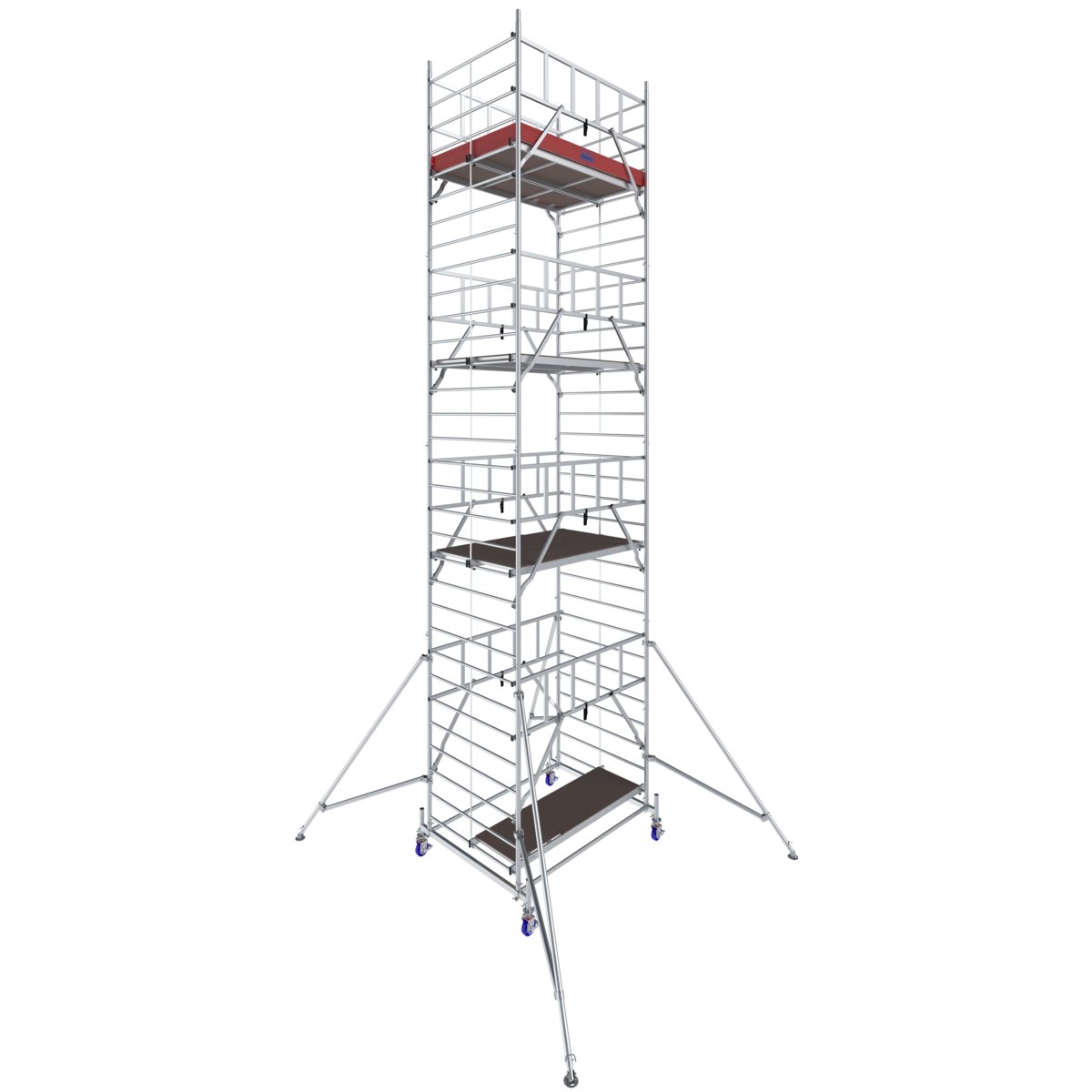 Das Kruase ProTec XXL Alu-FahrGerüst Breitaufbau mit extra großer Arbeitsfläche für effizientes Arbeiten. TÜV-geprüft, Belastbarkeit 200 kg/m² nach DIN EN 1004-1Durch die Befestigung des Geländerrahmens GuardMatic-System vor dem Einhängen der nächsthöheren Belagbühne ist der sichere Aufbau gewährleistet. Beim Durchsteigen der Belagbühne ist ein komplettes Geländer und damit eine Absturzsicherung vorhanden.Die Integration der Diagonalen in das GuardMatic-System gewährleistet eine einfache und sichere Montage. Für Transport oder Lagerung kann der Geländerrahmen platzsparend zusammengefaltet werden.Die 6-Punkt-Fixierung des GuardMatic-Systems sorgt für maximale Stabilität in der Höhe. Kraftschlüssige halbautomatische Diagonalen-Verbindungen ermöglichen den einfachen, schnellen und sicheren Aufbau.Die innovative Form der Diagonalen bietet eine maximale Nutzfläche auf der Belagbühne und st…