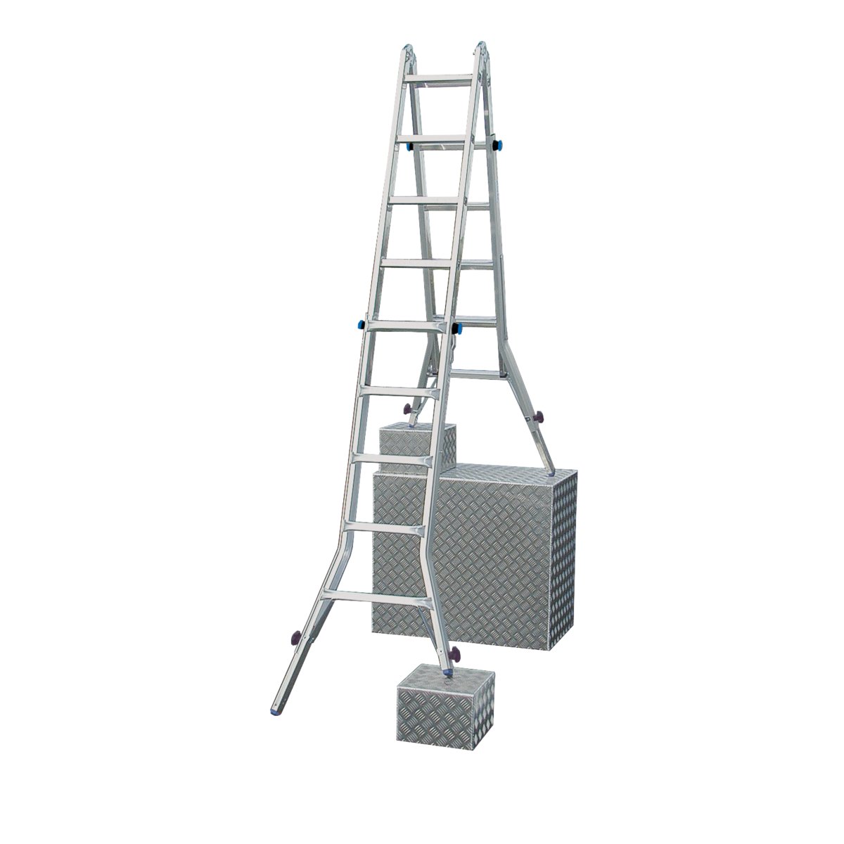 KRAUSE STABILO Sprossen-Gelenk-TeleskopLeiter mit 4 HolmverlängerungenGerüstet für vielfältige und komplexe Steigaufgaben. Verstärkte,höhenverstellbare, treppengängige Steh- und Anlegeleiter mitArbeitsbühnenfunktion (bei Nutzung des optional erhältlichen TeleBoards)und vier Holmverlängerungen zum Höhenausgleich.- Einsetzbar als Anlege-, Doppel-Stehleiter und Arbeitsbühne (inVerbindung mit dem TeleBoard)- Patentiertes ClickMatic-System für komfortable Höhenverstellung- 4 integrierte Holmverlängerungen an den Leiternaußenteilen(IntegratedTele-System)- Leiterninnenteil und Leiternaußenteile ergeben 2 separate Stehleitern- Eckverstrebungen für zusätzliche Stabilität- Innenleiter als Stehleiter nur mit Combi-Traverse 5- Rutschhemmende Fußkappen (SafetyCap)