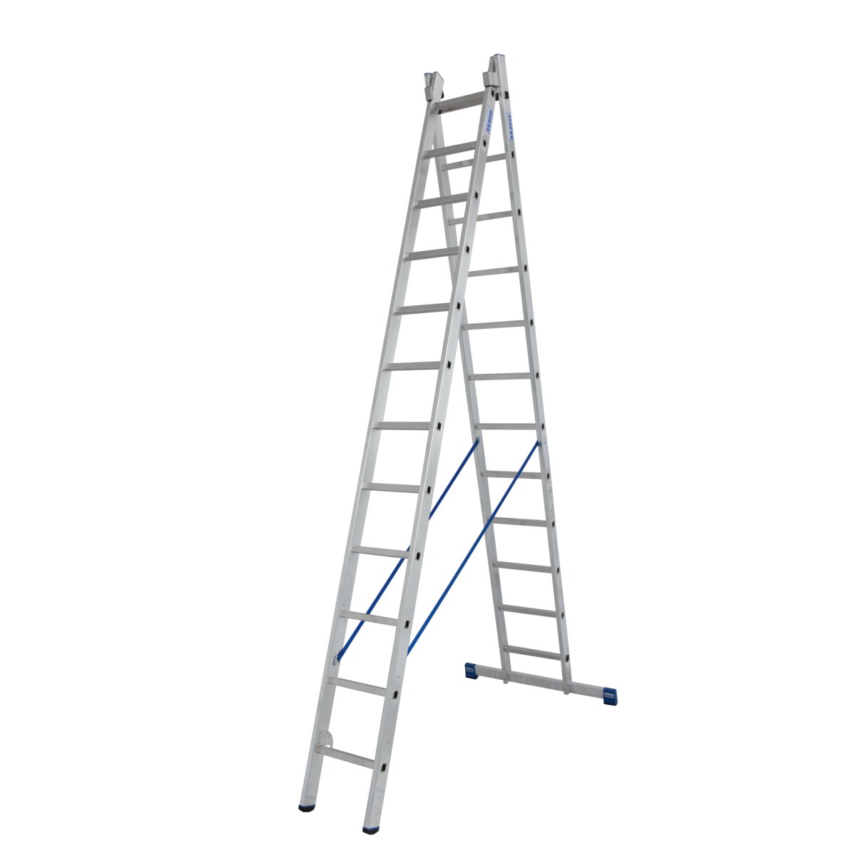 KRAUSE STABILO Sprossen-MehrzweckLeiter 2x12Leichte, zweiteilige professionelle Aluminium-Mehrzweckleiter, die alsbeidseitig begehbare Steh- sowie als Anlege- und Schiebeleiter mitQuertraverse verwendbar ist.- Stabile holmumgreifende Aluminium-Führungsprofile für hohe Stabilität- Holme aus Alu-Pressprofil mit zusätzlicher Kantenverstärkung- Langlebige, 32-fach verbördelte Sprossen-/Holmverbindung- Automatisch einrastende Sperrhebel (AutoSnap-System) für sicherenEinsatz und Transport- Breite Quertraverse für hohe Standsicherheit- Rutschhemmende, rundum profilierte, 30 mm tiefe Sprossen für einensicheren Stand- Hochfeste, in Metalllaschen eingenähte Gurtbänder- Rutschhemmende Fußkappen und -stopfen (SafetyCap)