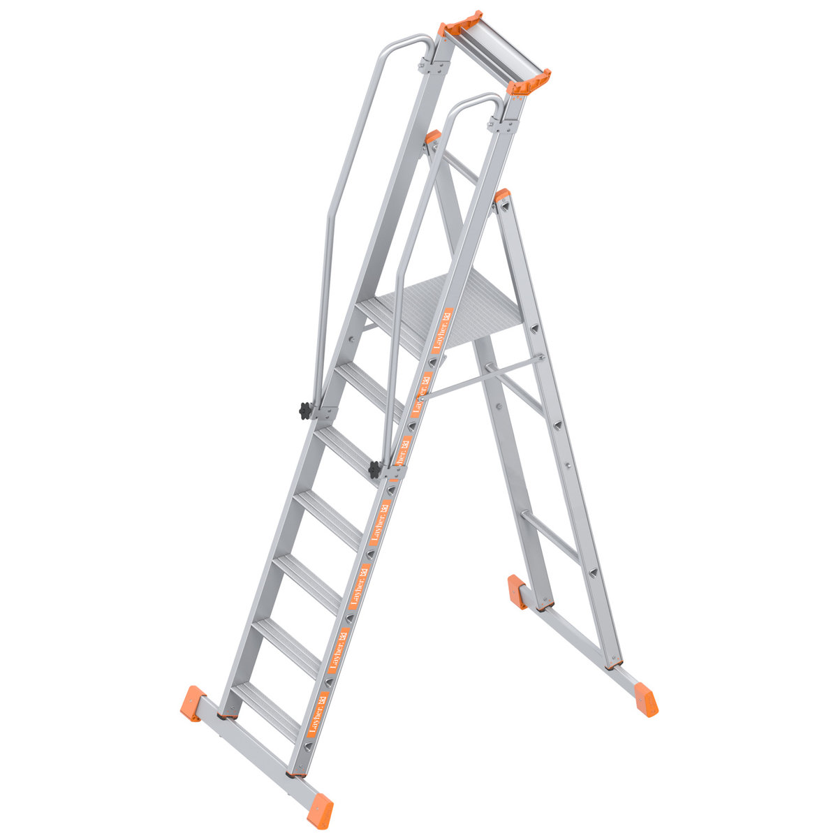 Aluminiumleitern von Layher stehen für Robustheit und Langlebigkeit bei geringem Gewicht und finden Anwendung in allen Gewerken. Die Stufen sind gefertigt aus hochfesten, geschlossenen Strangprofilen ohne Längsschweißnaht mit hoher Beanspruchbarkeit. Sie sind in den Holm 4-fach verpresst. Für ein hohes Maß an Trittsicherheit sorgt die strak geriffelte Trittfläche der Stufen. Zusätzliche Aussteifer am Holmende sorgen für ein Übertreffen der Werte der DIN EN 131.Groß dimensionierte Palttform (480×420 mm) für komfortables und ermüdungsfreies Arbeiten – auch bei länger andauernden ArbeitenBeidseitig am Holm montierte Handläufe für sicheren Halt beim Auf-und Absteigen. Zum Transport sind diese einklappbarAblageschale aus Aluminium zur Ablage von Material und Werkzeug.Beidseitige Traverse als Basisverbreiterung für eine erhöhte Standfestigkeit