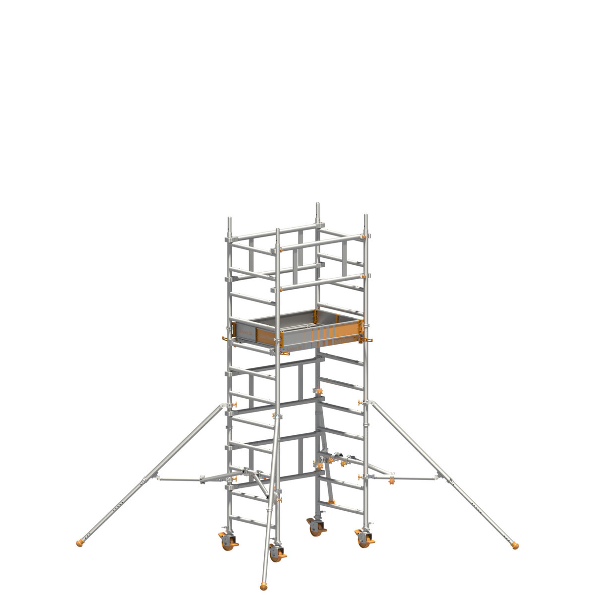 Der SoloTower von Layher ist das kleine Fahrgerüst, das schnell, sicher und einfach von nur einer Person bis zu einer Arbeitshöhe von 4,15 m aufgebaut werden kann.Die kompakten Maße aller Bauteile ermöglichen eine wirtschaftliche und effiziente Lager-, Transport- sowie Baustellenlogistik. Aus wenigen Bauteilen kann werkzeuglos ein „Transportwagen“ gebaut werden, in dem die übrigen Gerüstbauteile schnell und ergonomisch an den Bestimmungsort gebracht werden können. Der „Transportwagen“ passt durch jede gängige Türe.Durch die vorgegebene Auf- und Abbaufolge des SoloTowers mittels 3-T-Methode (Through The Trapdoor 2 In der Durchstiegsluke sitzend) befindet sich der Anwender mit Betreten der nächsthöheren Plattform aufgrund vormontierter Doppelgeländer bereits im gesicherten Bereich und erfüllt so geltende Vorschriften zur Arbeitssicherheit in Industrie und Handwerk.Leichte, handliche und…