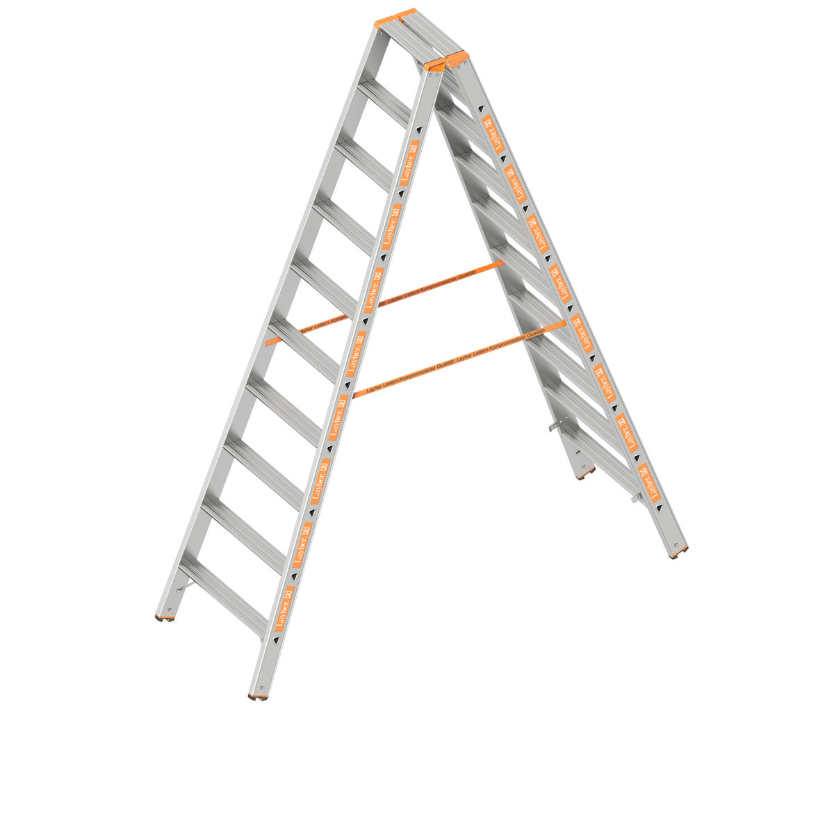Layher Stufenstehleiter TOPIC 10 Stufen; Aluminiumleiter 2×10 Stufen 80 mm breit, beidseitig begehbar, klappbar, Länge 2.50 m