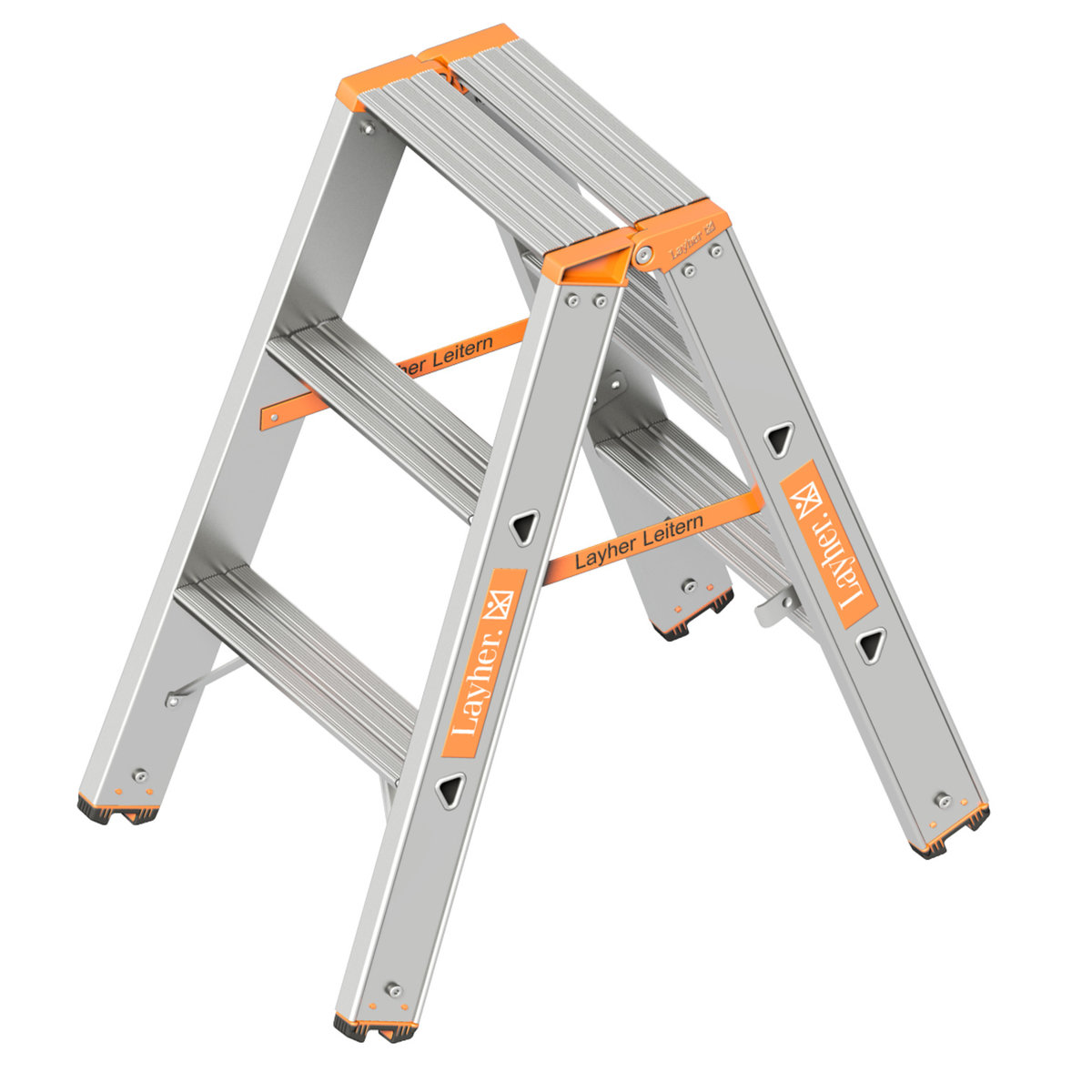 Layher Stufenstehleiter TOPIC, beidseitig begehbar, klappbar 3 Stufen; Länge 0.75 m