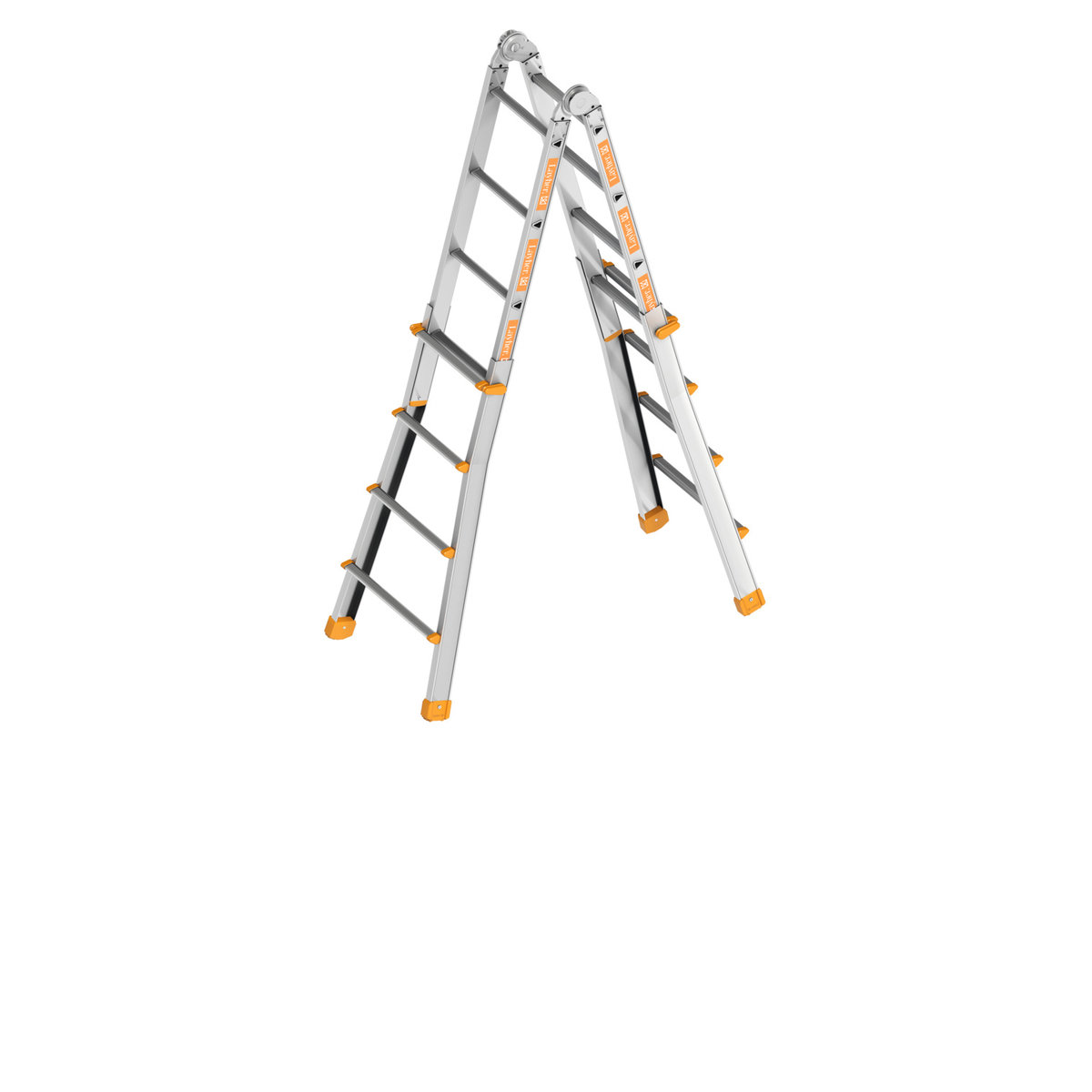 Aluminiumleitern von Layher stehen für Robustheit und Langlebigkeit bei geringem Gewicht und finden Anwendung in allen Gewerken. Die Sprossen sind gefertigt aus hochfesten, geschlossenen Strangprofilen ohne Längsschweißnaht mit hoher Beanspruchbarkeit. Sie sind in den Holm 4-fach verpresst. Für ein hohes Maß an Trittsicherheit sorgt die strak geriffelte Trittfläche der Sprossen. Zusätzliche Aussteifer am Holmende sorgen für ein Übertreffen der Werte der DIN EN 131.Variable einsetzbar als Stehleiter mit variable einseitig einstellbarer Höhe oder als Anlegeleiter mit variabler LängeLeiter kann auch zu zwei separaten Arbeitsböcken umgebaut werdenSprossenweise höhenverstellbarRobuste Bolzengelenke sichern die jeweilige Gebrauchsstellung