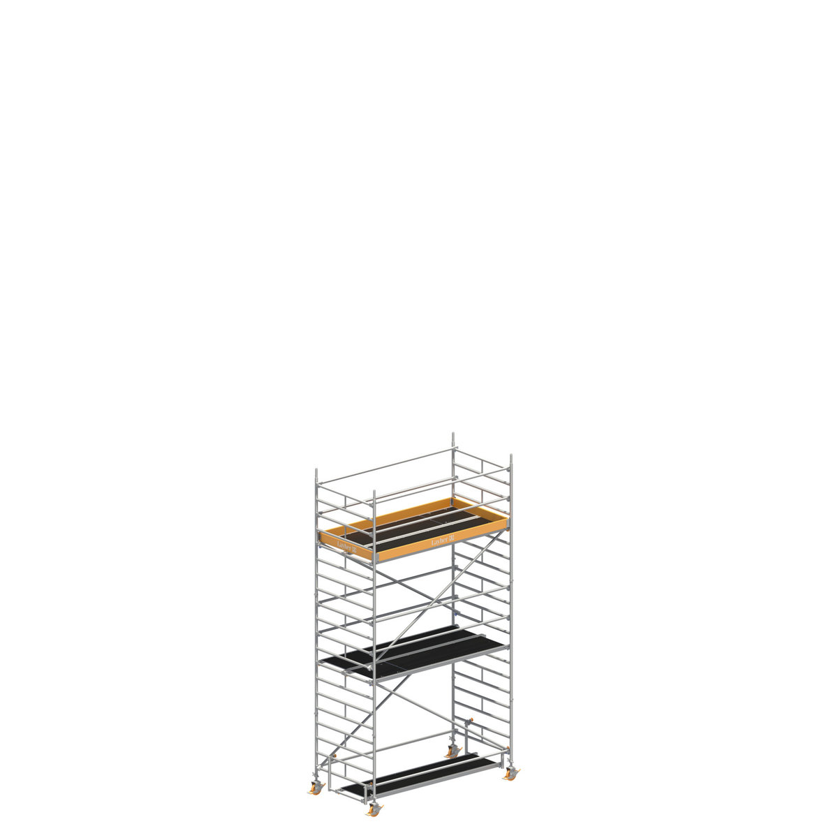 Das Layher Universalgerüst Uni Breit P2 mit dem doppelt breiten Arbeitsboden ist der bequeme Arbeitsplatz in der Höhe.Ideal für Arbeiten mit sperrigem Material und dazu notwendiger Bewegungsfreiheit.Standleitern (1,5 m breit) aus Aluminium für Steckmontage; Geländer und Diagonalen aus Aluminium sind einfach einzurasten.Arbeitsböden aus Aluminium-Rahmen und Sperrholz-Einlage (BFU 100) als Durchstieg für gefahrlosen Innenaufstieg; vorschriftsmäßige Ruhepodeste bereits integriert.Robuste Lenkrollen mit zentrischer Lasteinleitung nach Arretierung für besondere Standfestigkeit sowie Stahlspindeln zum Niveauausgleich.Basisverbreiterung: mit Fahrbalken aus Stahl, teleskopierbar für wahlweises Arbeiten an Decke oder Wand, erst ab 8,60 m Arbeitshöhe notwendig; alternativ mit Gerüststützen.Für noch mehr Sicherheit und komfortablen Aufstieg Stufeneinhängeleitern mit breiten Trittstufen.Arbeits…