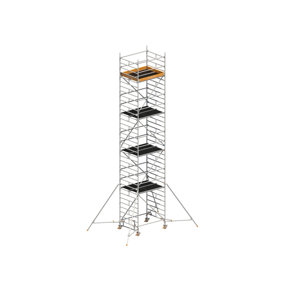 Layher UNI Kompakt Fahrgerüst, Universalgerüst mit breiter Arbeitsfläche und kompaktem Grundmaß Gerüsthöhe 9,45 m
