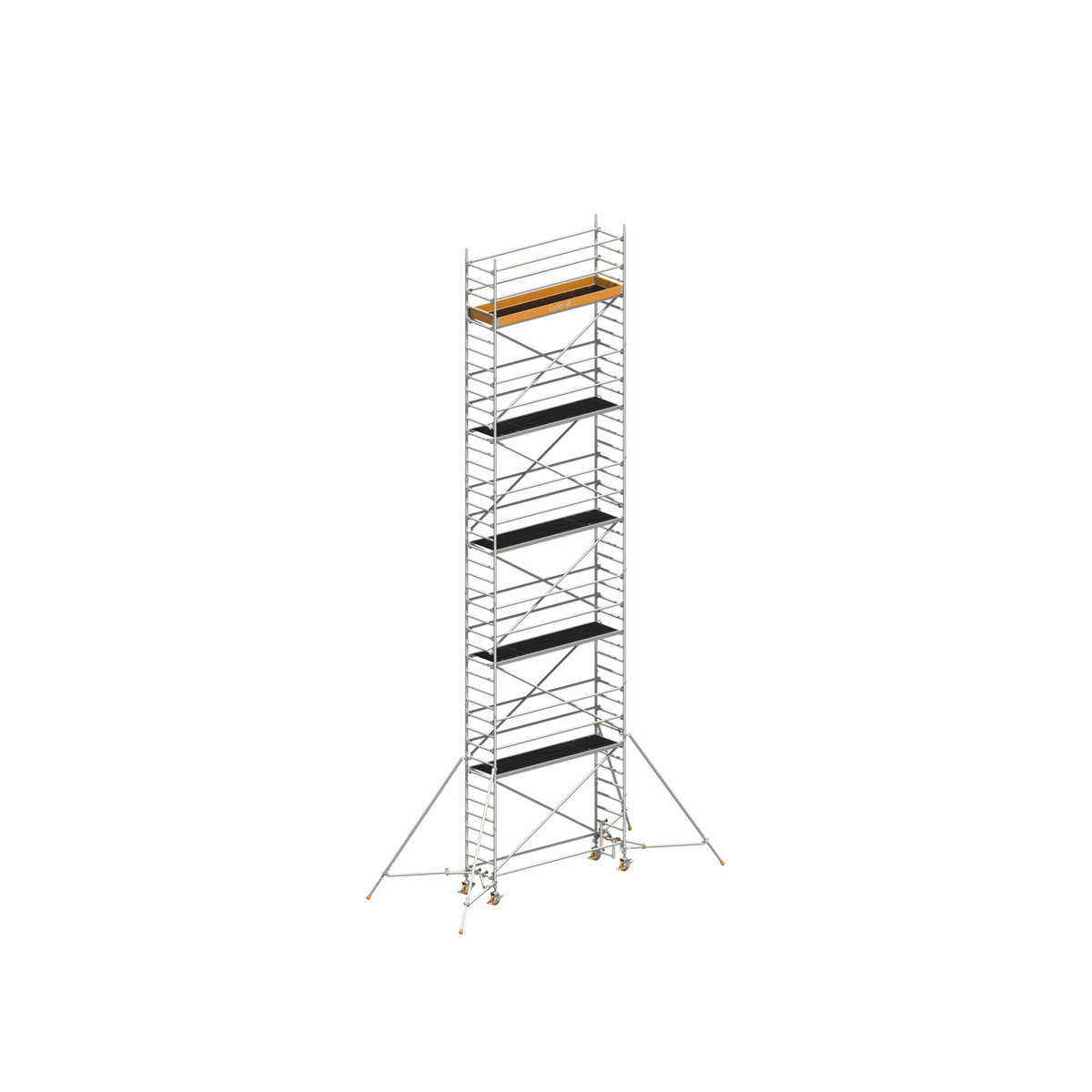 Das UNI Standard Fahrgerüst von Layher ist geeignet für Arbeiten an der Wand und an der Decke, an Maschinen, in technischen Anlagen, Betriebs-und Lagerhallen, innen-und außenStandleitern aus Aluminium für Steckmontage; Geländer und Diagonalen aus Aluminium sind einfach einzurasten.Arbeitsböden aus Aluminium-Rahmen und Sperrholz-Einlage (BFU 100), auch als Durchstieg für gefahrlosen Innenaufstieg; vorschriftsmäßige Ruhepodeste bereits integriert.Robuste Lenkrollen mit zentrischer Lasteinleitung nach Arretierung für besondere Standfestigkeit sowie Stahlspindeln zum Niveauausgleich.Basisverbreiterung: mit Fahrbalken aus Stahl, starr oder teleskopierbar, mit Rohrverbindern für wahlweises Aufstecken der Standleitern zum Arbeiten an Decke oder Wand; alternativ mit Gerüststützen.Für noch mehr Sicherheit und komfortablen Aufstieg Stufeneinhängeleitern mit breiten Trittstufen.Arbeitshöhe: 1…