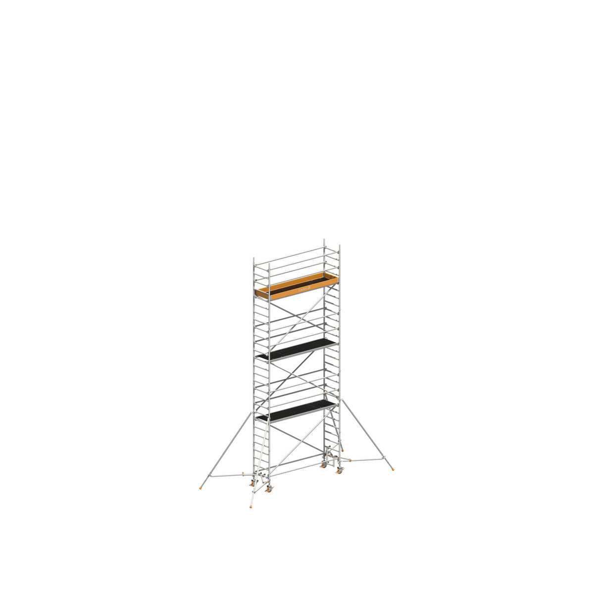 Das UNI Standard Fahrgerüst von Layher ist geeignet für Arbeiten an der Wand und an der Decke, an Maschinen, in technischen Anlagen, Betriebs-und Lagerhallen, innen-und außenStandleitern aus Aluminium für Steckmontage; Geländer und Diagonalen aus Aluminium sind einfach einzurasten.Arbeitsböden aus Aluminium-Rahmen und Sperrholz-Einlage (BFU 100), auch als Durchstieg für gefahrlosen Innenaufstieg; vorschriftsmäßige Ruhepodeste bereits integriert.Robuste Lenkrollen mit zentrischer Lasteinleitung nach Arretierung für besondere Standfestigkeit sowie Stahlspindeln zum Niveauausgleich.Basisverbreiterung: mit Fahrbalken aus Stahl, starr oder teleskopierbar, mit Rohrverbindern für wahlweises Aufstecken der Standleitern zum Arbeiten an Decke oder Wand; alternativ mit Gerüststützen.Für noch mehr Sicherheit und komfortablen Aufstieg Stufeneinhängeleitern mit breiten Trittstufen.Arbeitshöhe: 1…