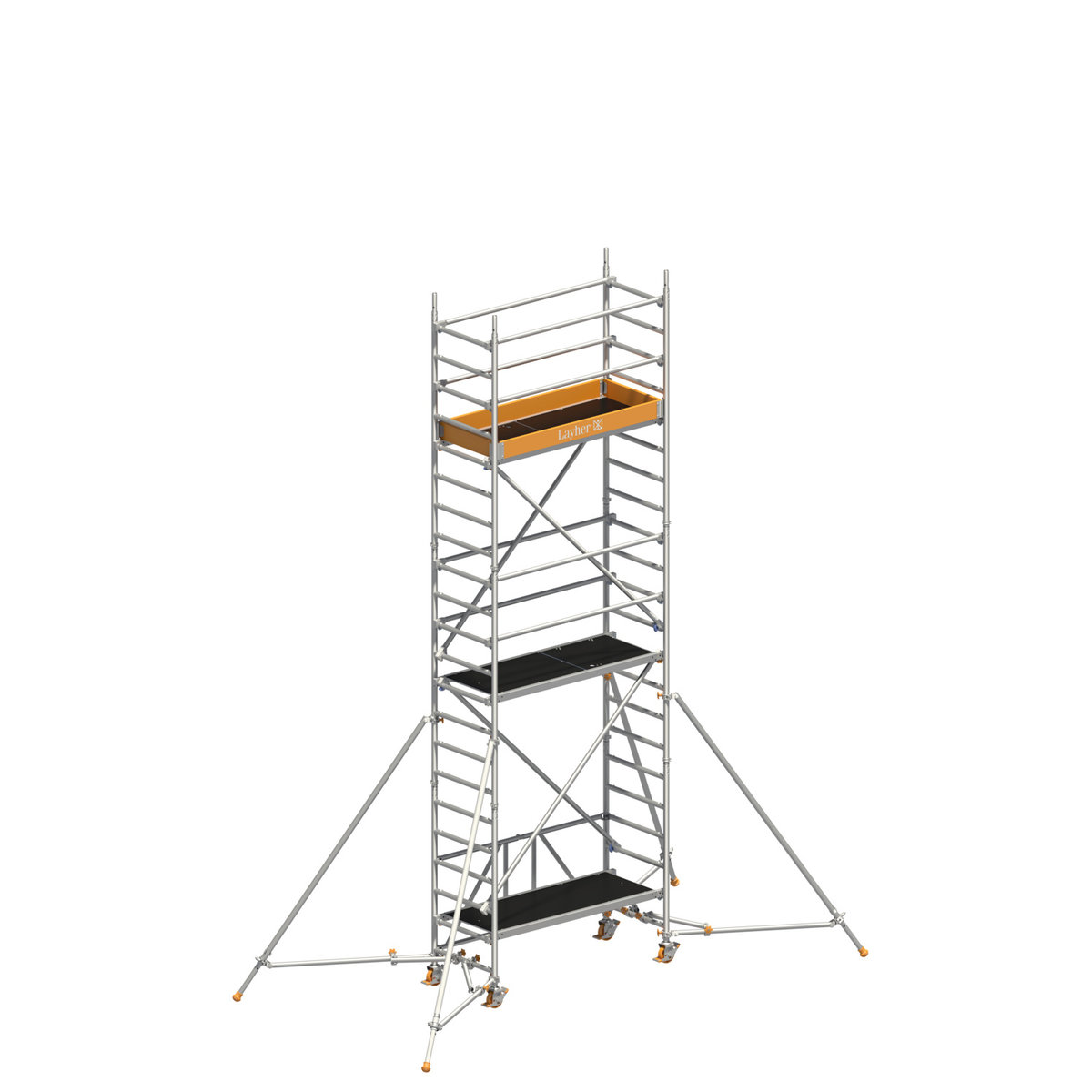 Das “Zifa” ist praktisch ein “Fahrgerüst” für Arbeiten in geringen Höhen oder beengten Räumen. Die Grundeinheit kann flach zusammengefaltet gelagert und transportiert werden – zum Aufbau einfach auseinanderziehen, Boden einlegen. Fertigt. Die Grundeinheit kann aufgebaut und vollbepackt durch Standard-Zimmertüren gefahren werden. Grundgerüst aus Aluminium für wechselseitige Steckmontage, die Geländer und Diagonalen sind aus Aluminium sind einfach einrastbar. Stabile Lenkrollen sorgen für besondere Standfestigkeit. Die Ballastierungsvorgaben sind gemäßg der Aufbau-und Verwenungsanleitung zu beachten je nach Gerüsttyp können diese variieren.Fahrgerüst für das Arbeiten in geringen Höhen oder engen Räumen. Standhöhe 4.61 m / Arbeitshöhe 6.61 m / Gerüsthöhe 5.83 mPlattformen im Abstand von 2 Metern für höchste Sicherheit bei Montage, beim Auf- und Abstieg sowie bei der Arbeit.Umlaufender Se…