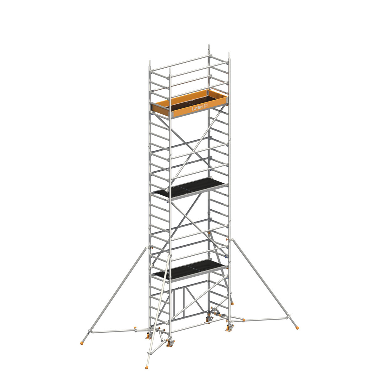 Das “Zifa” ist praktisch ein “Fahrgerüst” für Arbeiten in geringen Höhen oder beengten Räumen. Die Grundeinheit kann flach zusammengefaltet gelagert und transportiert werden – zum Aufbau einfach auseinanderziehen, Boden einlegen. Fertigt. Die Grundeinheit kann aufgebaut und vollbepackt durch Standard-Zimmertüren gefahren werden. Grundgerüst aus Aluminium für wechselseitige Steckmontage, die Geländer und Diagonalen sind aus Aluminium sind einfach einrastbar. Stabile Lenkrollen sorgen für besondere Standfestigkeit. Die Ballastierungsvorgaben sind gemäßg der Aufbau-und Verwenungsanleitung zu beachten je nach Gerüsttyp können diese variieren.Fahrgerüst für das Arbeiten in geringen Höhen oder engen Räumen. Standhöhe 5.61 m / Arbeitshöhe 7.61 m / Gerüsthöhe 6.83 mPlattformen im Abstand von 2 Metern für höchste Sicherheit bei Montage, beim Auf- und Abstieg sowie bei der Arbeit.Umlaufender Se…