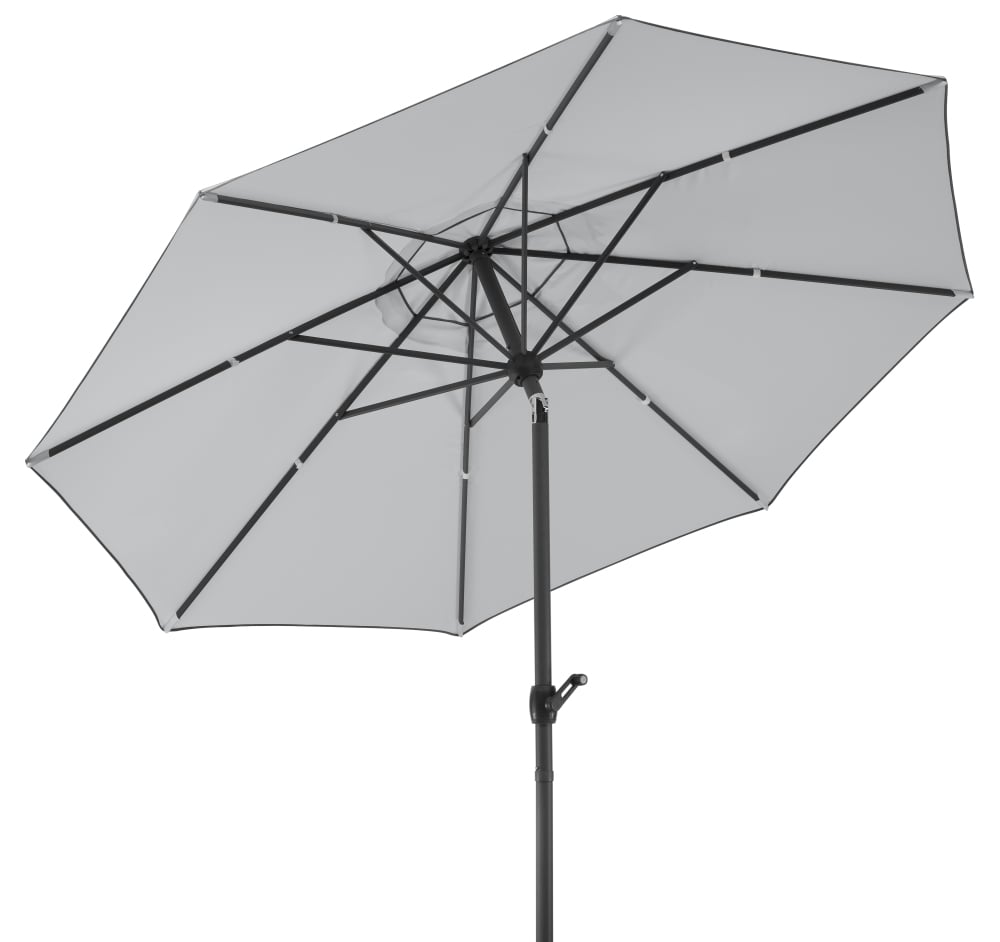 Marktschirm Adria 300-8 cm Der Sonnenschirm Adria besticht nicht nur durch seine hochwertige Qualität, sondern auch durch seine außergewöhnliche Optik. Besonderes Merkmal sind die farblich abgesetzten Dachnähte, die diesen Schirm in Ihrem Garten zum „Hingucker“ machen. Adria – optisch herausragend Unser Sonnenschirm Adria hat einen Durchmesser von ca. 300 cm. Die Bespannung besteht aus 100 % Polyester und hat eine Stärke von ca. 200 g/m², was sie sehr widerstandsfähig macht. Zudem ist sie verrottungsfest. Der Bezug ist ohne Volant gefertigt, wodurch sein elegantes Aussehen verstärkt wird. Außerdem ist der Bezug mit einer wasserabstoßenden Imprägnierung versehen, wodurch er auch einem kurzen Regenschauer standhält. Durch den exzellenten UV-Schutz von 50+ sind Sie optimal vor der direkten Sonneneinstrahlung geschützt. Dieser Wert wurde nach dem australisch-neuseeländischem Standard festgelegt. Besondere Merkmale Das Alu/Stahl-Gestell ist anthrazitgrau pulverbeschichtet. Der Stock ist zweiteilig und hat einen Durchmesser von ca. 48 mm, was ihn sehr stabil macht. Der Schirm verfügt über eine Kurbel, mit der sich der Schirm ohne großen Kraftaufwand Öffnen und Schließen lässt. Markantes Kennzeichen dieses Schirmes ist das farblich abgesetzte Einfassband und die Nähte. Abgestimmt auf die Farbe des Gestells sind die Nähte in der Farbe anthrazitgrau. Dieser „hell-dunkel – Kontrast“ führt zu einem harmonischen und ausgeglichenen Gesamtbild. Zudem kann der Schirm mit Hilfe des Metallknicker abgeknickt werden und ermöglicht Ihnen dadurch einen optimalen Schutz vor der direkten Sonneneinstrahlung. Zubehör Zum Aufstellen empfehlen wir einen Schneider Schirmständer mit einem Mindestgewicht von 40 kg (im Lieferumfang nicht enthalten), da nur mit dem passenden Ständer die Stabilität des Schirmes gewährleistet ist. Passende Schirmständer, die mit diesem Schirm verwendet werden können sind der PE-Ständer ca. 40 kg anthrazit (Art. 857-15) oder der Betonständer ca. 40 kg anthrazit (Art. 898-15). Alternativ kann auch ein Plattenständer für Wegeplatten in der Größe 40 x 40 cm oder 50 x 50 cm (Art. 837-15, Lieferung erfolgt ohne Platten), ein Bodendübel (Art. 888-00), eine Bodenhülse (Art. 827-00) oder der Granitständer ca. 42 kg (Art. 869-00) verwendet werden. Ebenfalls zusätzlich erhältlich ist eine lichtundurchlässige Schutzhülle (Art. 821-00), die Ihren Schirm während des Nichtgebrauchs schützt und Sie so länger Freude daran haben lässt -Nur für den privaten Gebrauch im Außenbereich- – Produktart: Sonnenschirm