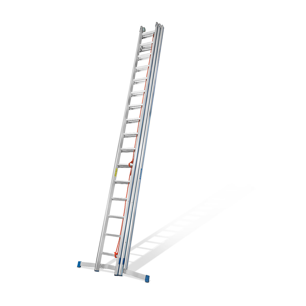 Die dreiteilige BAVARIA Seilzugleiter gewährt sicheren Zugang zu höchstgelegenen Arbeitsplätzen und ist doch kompakt verstaubar. Der Seilzugmechanismus mit robustem Fallhaken sowie Wandrollen ermöglichen bequemes Ausfahren und die Höhenregulierung vom Boden aus. Die massive Ausführung der Holme, Sprossen und Beschläge bieten Trittsicherheit und Komfort – ein gutes Gefühl in der Höhe.Flexibilität vom Feinsten: extra-lange, verstärkte Ausführung mit kompaktem Transportmaßam Dach anliegend von 4 auf 10 Meter ausziehbarergonomisch geformter, besonders starker 100 mm Ovalholm für höchste Ansprüchesicher: stark geriffelte 40mm-Sprossen und rutschfeste Kunststoffschuhehohe Standsicherheit und extra-breite Unterleiter (430 mm)einfach und sicher von Sprosse zu Sprosse höhenverstellbar (Sprossen-Raster 280 mm)Holme und Dreikantsprosse aus hochfestem Strangpress-Profil (Güteklasse T66)vierfach…
