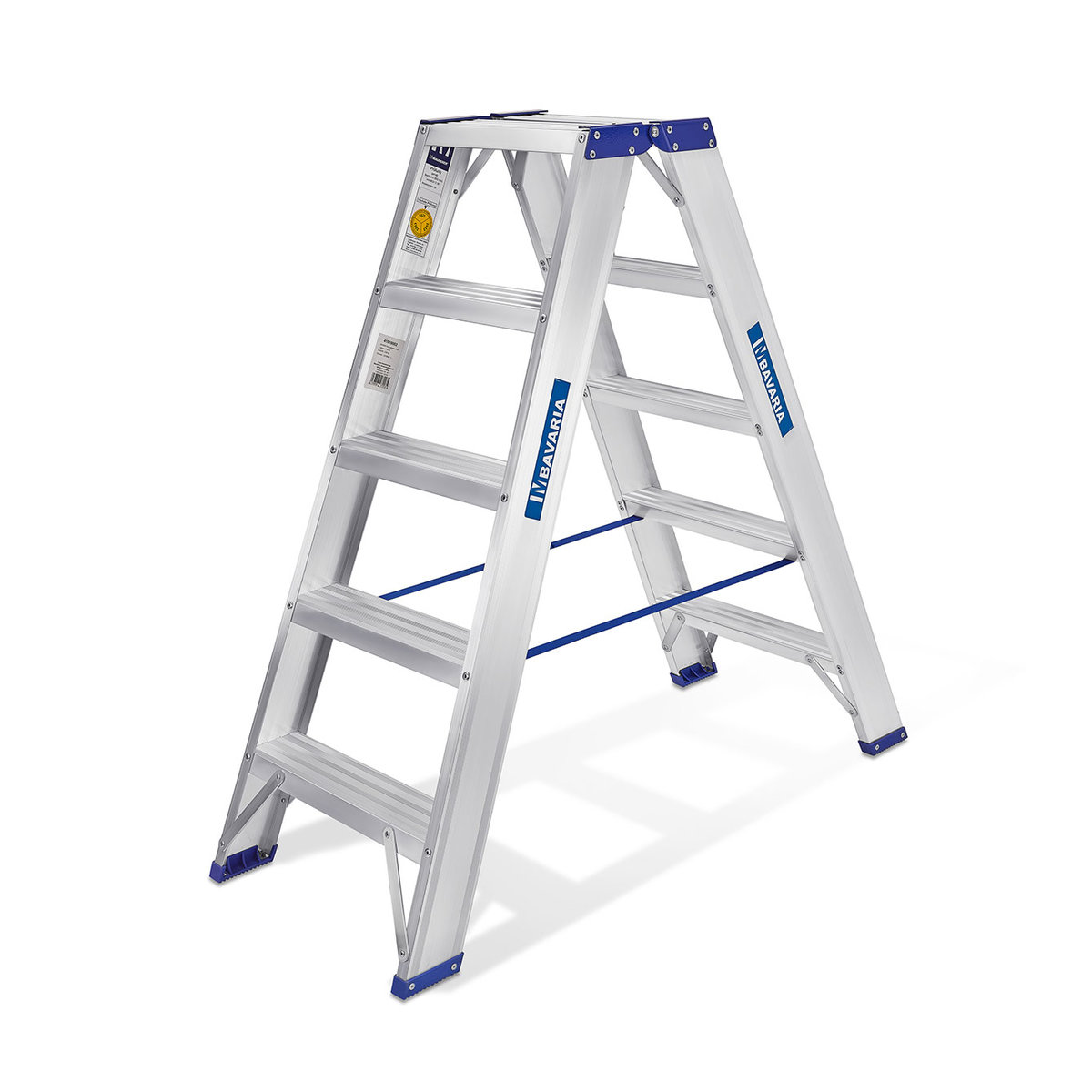 Die BAVARIA Stufen-Stehleiter ist auf ein geringes Transportgewicht hin optimiert. Sie ist damit auf Baustellen ein kostengünstiger, leichter Begleiter für Elektriker und Installateure, die an unterschiedlichen Orten arbeiten. Hoher Arbeitskomfort und sicherer Stand sind durch die rutschsichere Profilierung gewährleistet – egal, ob Sie seitlich oder rittlings auf der Leiter stehen.leichte und bequeme, beidseitig begehbare Stufenstehleitersicheres und komfortables Arbeiten auf der Stehleiter: TRBS 2121-2 und EN 131-1/-2 konformGriffschutz an der obersten Stufe für komfortable Handhabung85mm tiefe, rutschfeste Trittfläche für sicheren Stand beim ArbeitenSicherheits-Keilfüße: rutschhemmend und kabelschonendideal geeignet für Innenausbau-ArbeitenScharniere aus Aluminiumgeringes Gewicht bei guter Steifigkeitgenietete Holm-Stufen-Verbindungmit Spreizsicherung