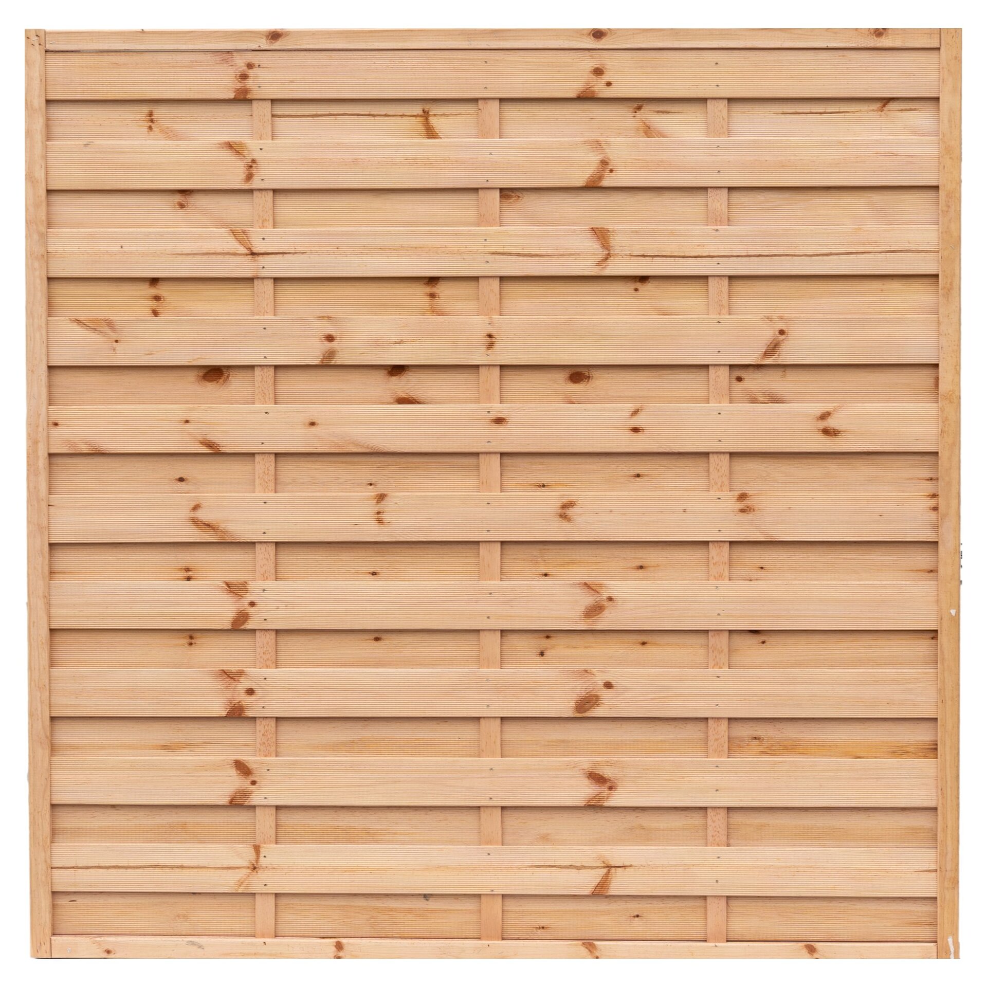 Maxi-Massiv-Serie LÄRK 180×180 cm Der Maxi-Massiv LARIX Sichtschutzzaun – ein wahres Schmuckstück für Ihren Garten oder Ihr Grundstück. Mit seiner einfachen Montage und seinen vielseitigen Einsatzmöglichkeiten überzeugt er auf ganzer Linie. Dieser robuste Sichtschutzzaun aus Kiefer, behandelt mit einer lärchefarbenen Lasur, besticht nicht nur durch seine natürliche Optik, sondern auch durch seine Stabilität. Ein stabiler Rahmen mit einer Breite von 45 x 45 mm sorgt dafür, dass dieser Zaun jeder Witterung standhält. Mit einer Höhe von 180 cm bietet der Maxi-Massiv LARIX Ihnen den gewünschten Schutz vor neugierigen Blicken und ermöglicht Ihnen ungestörte Stunden in Ihrem persönlichen Rückzugsort. Die verschraubten und geriffelten Lamellen verleihen dem Zaun nicht nur zusätzliche Stabilität, sondern sorgen auch für eine moderne Ästhetik. Dank der Lärche Optik fügt sich der Maxi-Massiv LARIX harmonisch in jede Gartengestaltung ein und verleiht Ihrem Außenbereich eine warme und einladende Atmosphäre. Ob als Begrenzung Ihres Grundstücks oder zur Abgrenzung verschiedener Bereiche im Garten – die flexiblen Einsatzmöglichkeiten dieses Zauns sind nahezu grenzenlos. Die einfache Montage des Maxi-Massiv LARIX ermöglicht Ihnen eine schnelle Umsetzung Ihrer Ideen. Innerhalb kürzester Zeit steht Ihr neuer Sichtschutzzaun und Sie können die Vorzüge eines geschützten Gartens genießen. Entscheiden Sie sich für den Maxi-Massiv LARIX und profitieren Sie von einem hochwertigen Sichtschutzzaun, der nicht nur stabil, sondern auch ästhetisch ansprechend ist. Verleihen Sie Ihrem Garten das gewisse Etwas und lassen Sie sich von diesem einzigartigen Produkt begeistern. Achtung: Biozidprodukte vorsichtig verwenden. Vor Gebrauch stets Etikett und Produktinformationen lesen. – Breite: 4,5, – Gewicht: 20,9, – Höhe: 180, – Länge: 180, – Produktart: Zaun und Zubehör